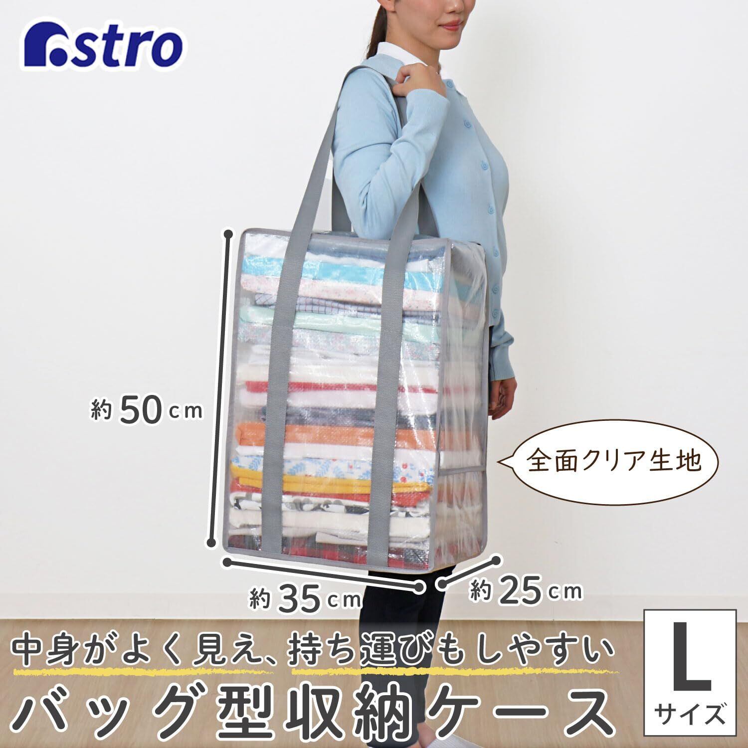 アストロ 収納ケース クリア Lサイズ 2個組 収納バッグ 持ち手付き 収納袋 しっかり丈夫 持ち運びしやすい 大容量 衣類収納 衣装ケース 中身が見える 肩掛けできる 引っ越しバッグ お昼寝バッグ ランドリーバッグ 折りたたみ 112-12