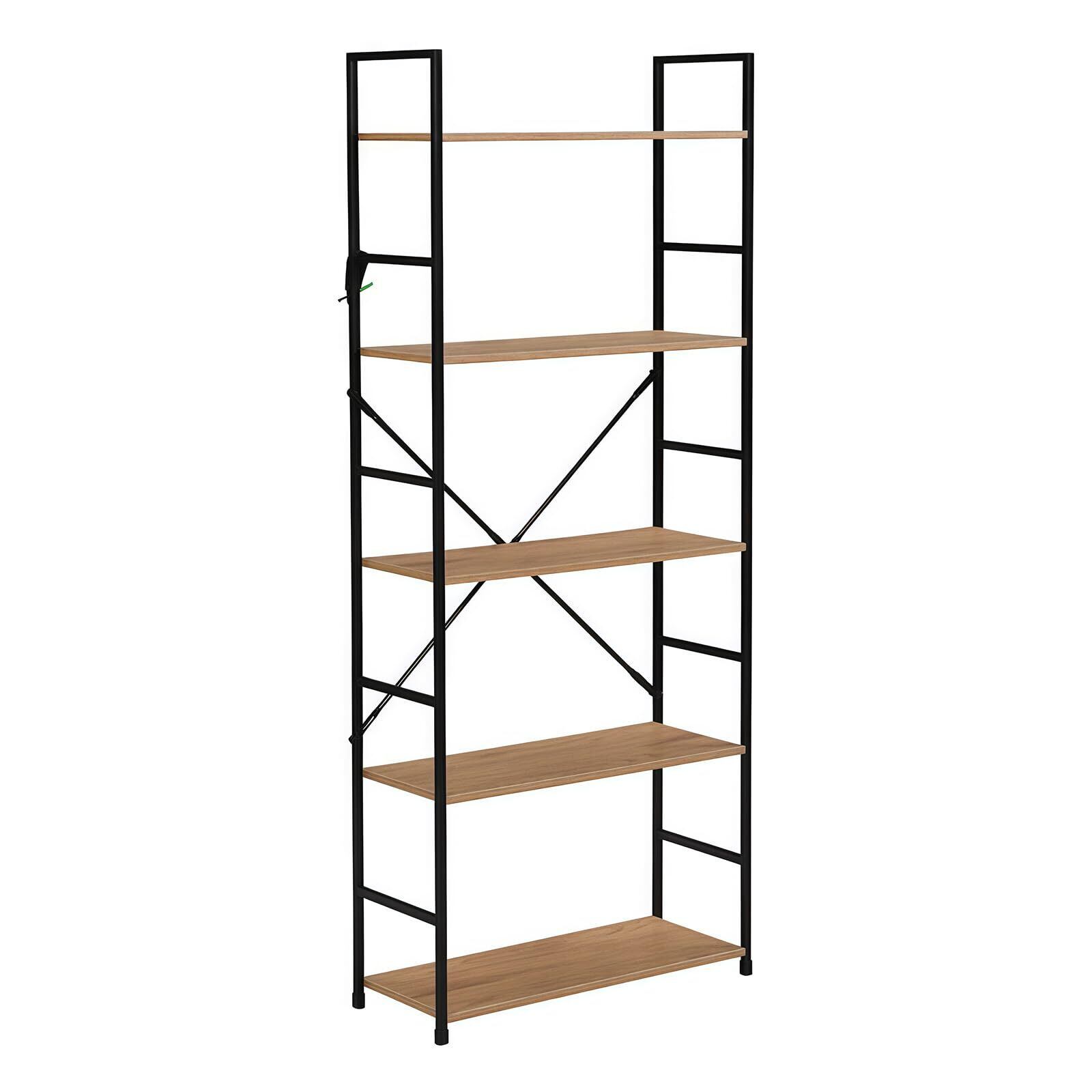 オープンシェルフ ラック 棚 本棚 おしゃれ 多機能収納ラック スリム 隙間収納 木製棚板 スチール 幅58.6×奥行23.5×高さ144cm 5段 組立品 寢室 リビングルーム ホームオフィス オーク色×ブラック