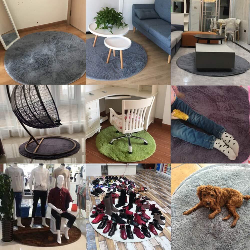 洗える 円型 ラグマット カーペット オールシーズン シャギーラグ 絨毯 滑り止め付 冬用 夏用 床暖房対応 (直径約80cm, グリーン1)