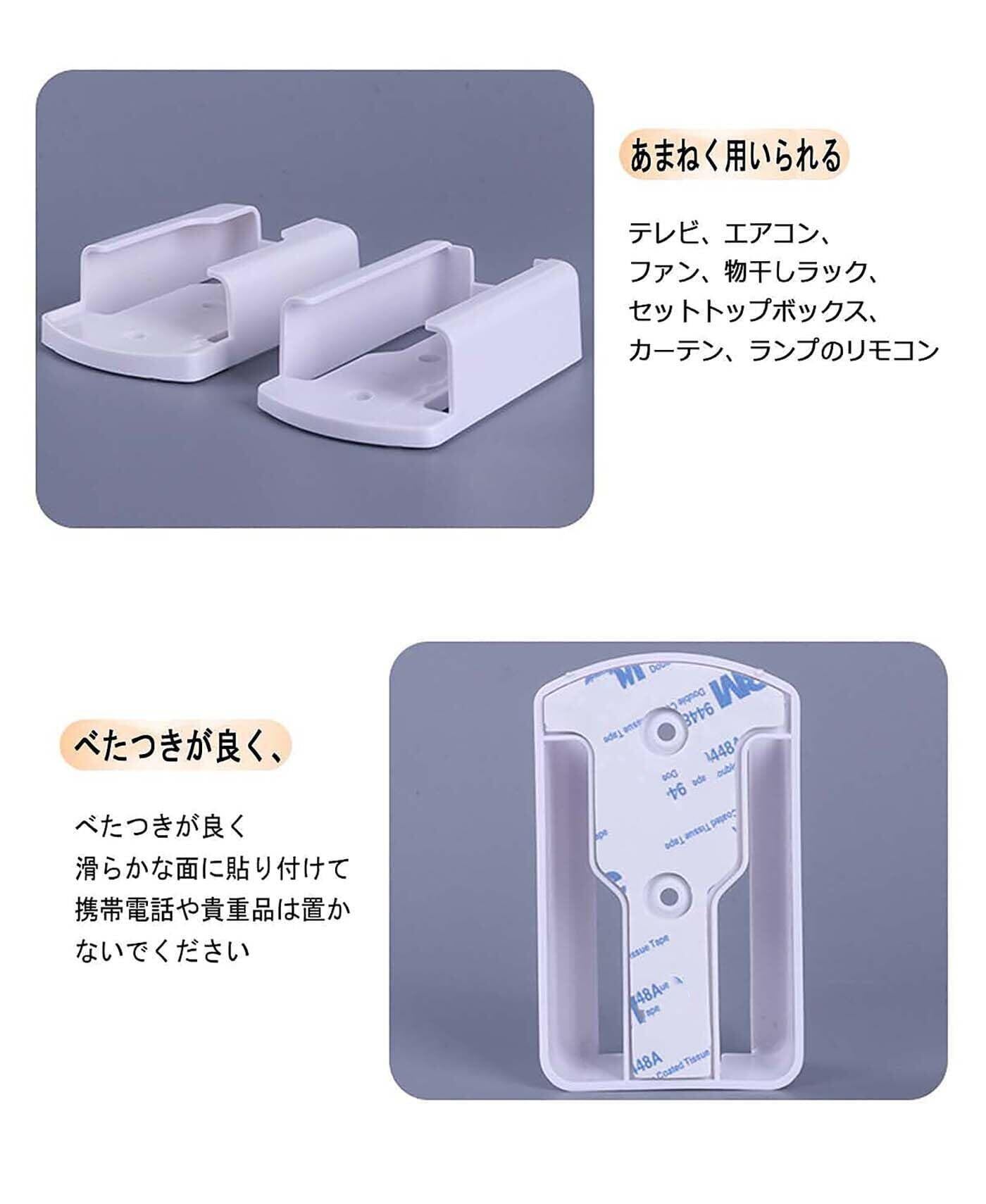 パッケージ内容:リモコンスタンド 2個、3 M強力ステッカー 2枚、ネジ 4個、エキスパンションボルト 4個。エアコン リモコン、テレビ リモコン、携帯電話などに対応可能。