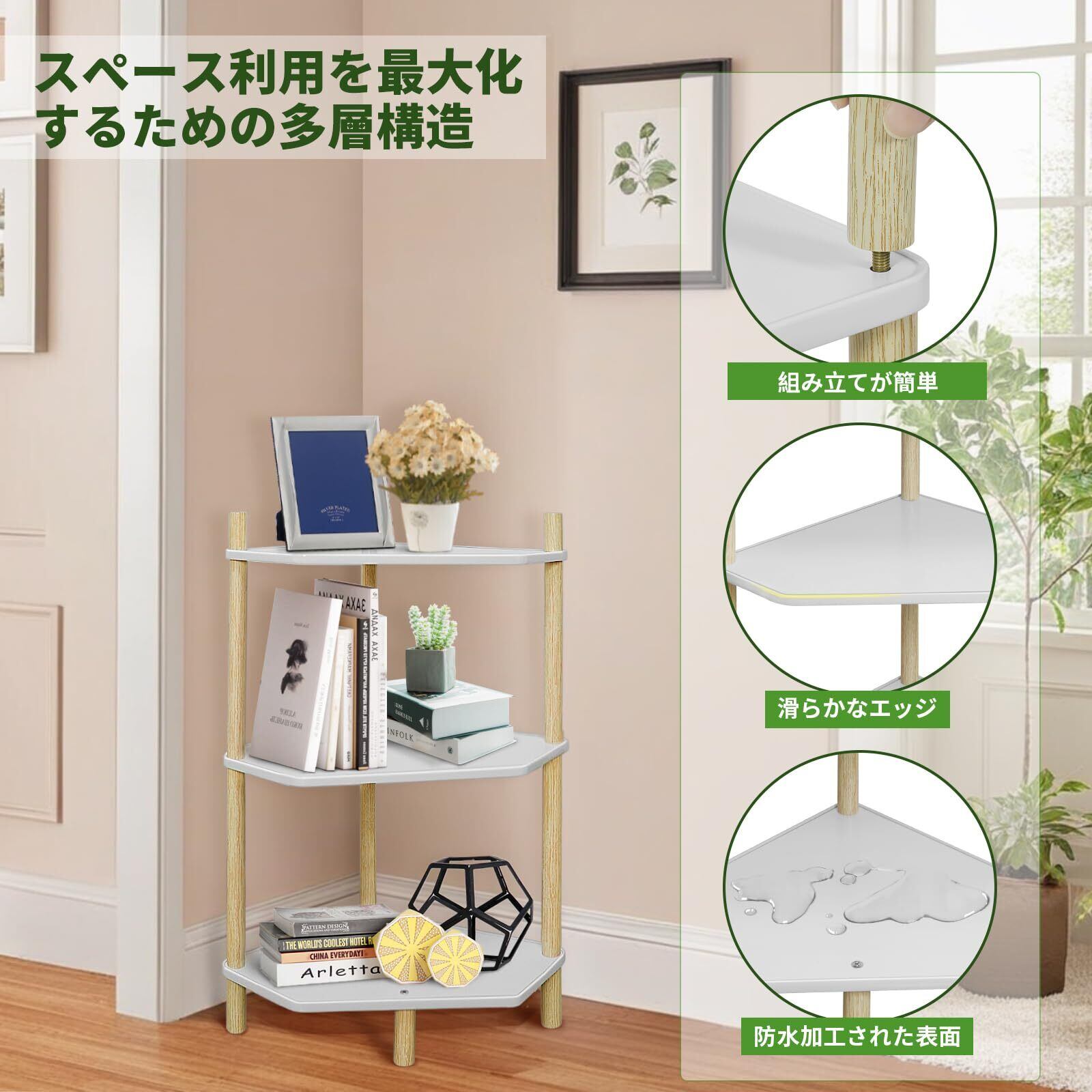 コーナーシェルフ 3段 ラック コーナー コーナーラック 木製 軽量 隙間収納 幅30×奥行30×高さ72cm 多用途 オープンラック 組み立て簡単 白 (3段)