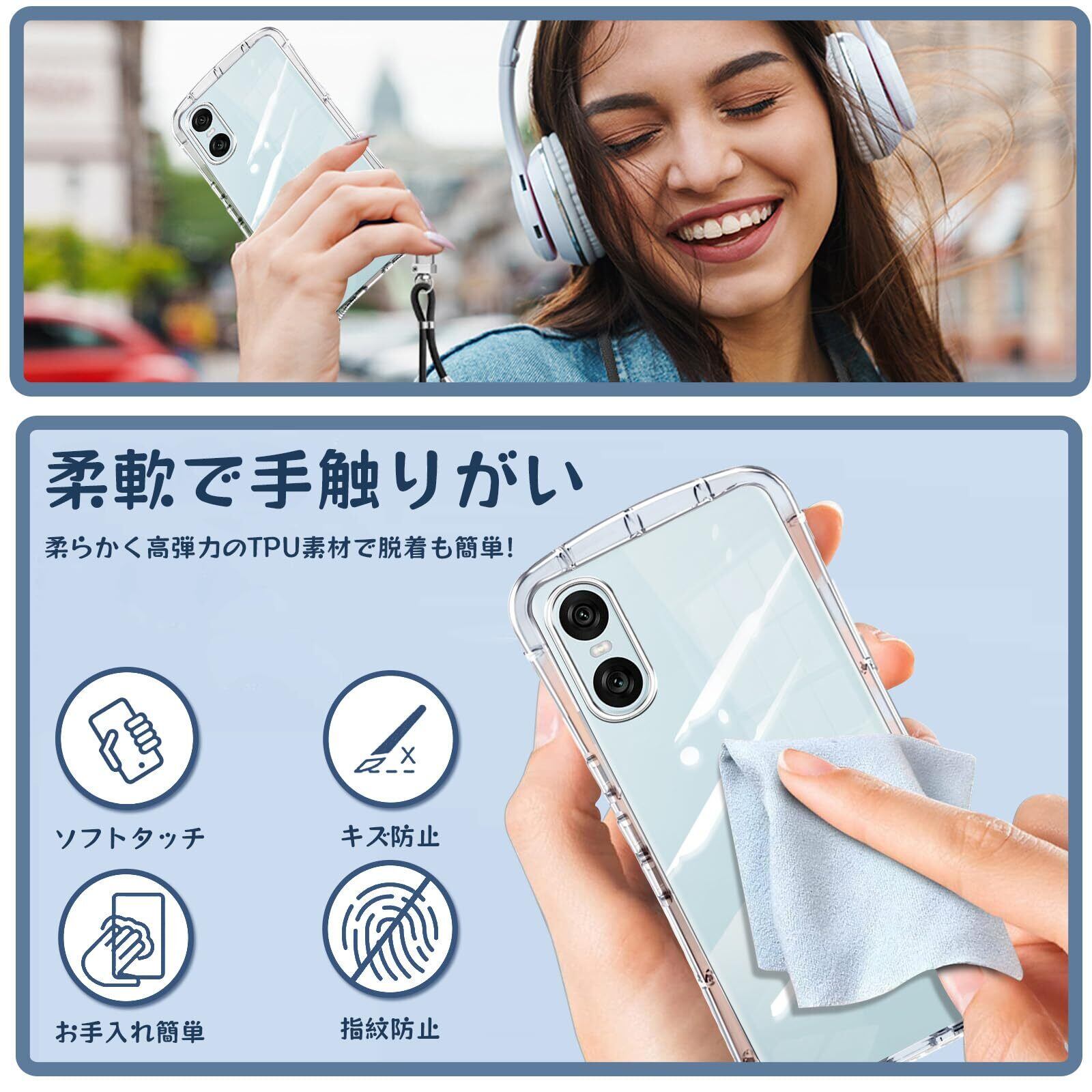 Xperia 10 VI SO-52E 用の ケース ショルダー ストラップ 10VI so-52e カバー クリア 斜めかけ 肩掛け 首掛け 韓国 エクスペリア 10 VI スマホケース 全透明