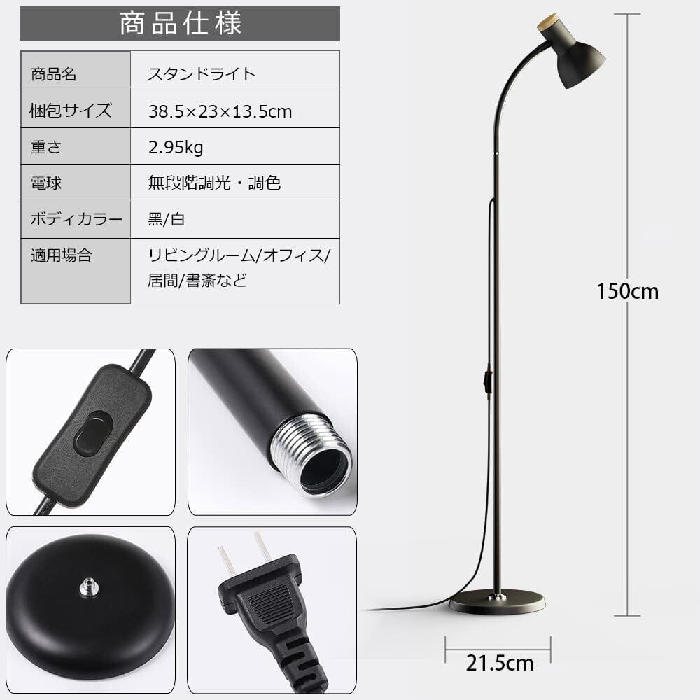【無段階調光・調色&柔軟なネック】このフロアライトは2700K-6500K色温度と10%-100%の明るさが調節可能で、お気に入りの光を設定できます。また、ライトの最上は360°回転可能により、お好みな角度が自由に調整でき、照らしたい所に明かりが届き、全方向照明を実現します。