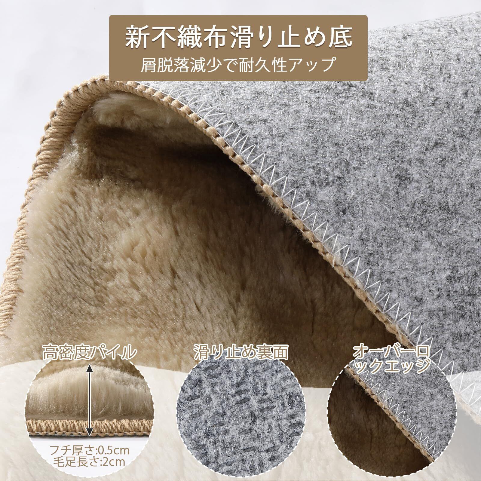 【厚手仕様】サイズ:120x160cm、厚さ:約25mm、表面素材=100%ポリエステル(ラビットファー調)。中材=ウレタンフォーム。裏面素材=不織布(滑り止め加工)。特徴=防音・防ダニ・抗菌・防臭・吸湿。オーバーロック加工の端、遊び毛が出たり、形を崩れたりしにくい。梱包=折り(ご注意:畳み折りたたんで輸送するため、一時的に折り目が付く場合があり、 敷いていると時間の経過とともに平らになります。)