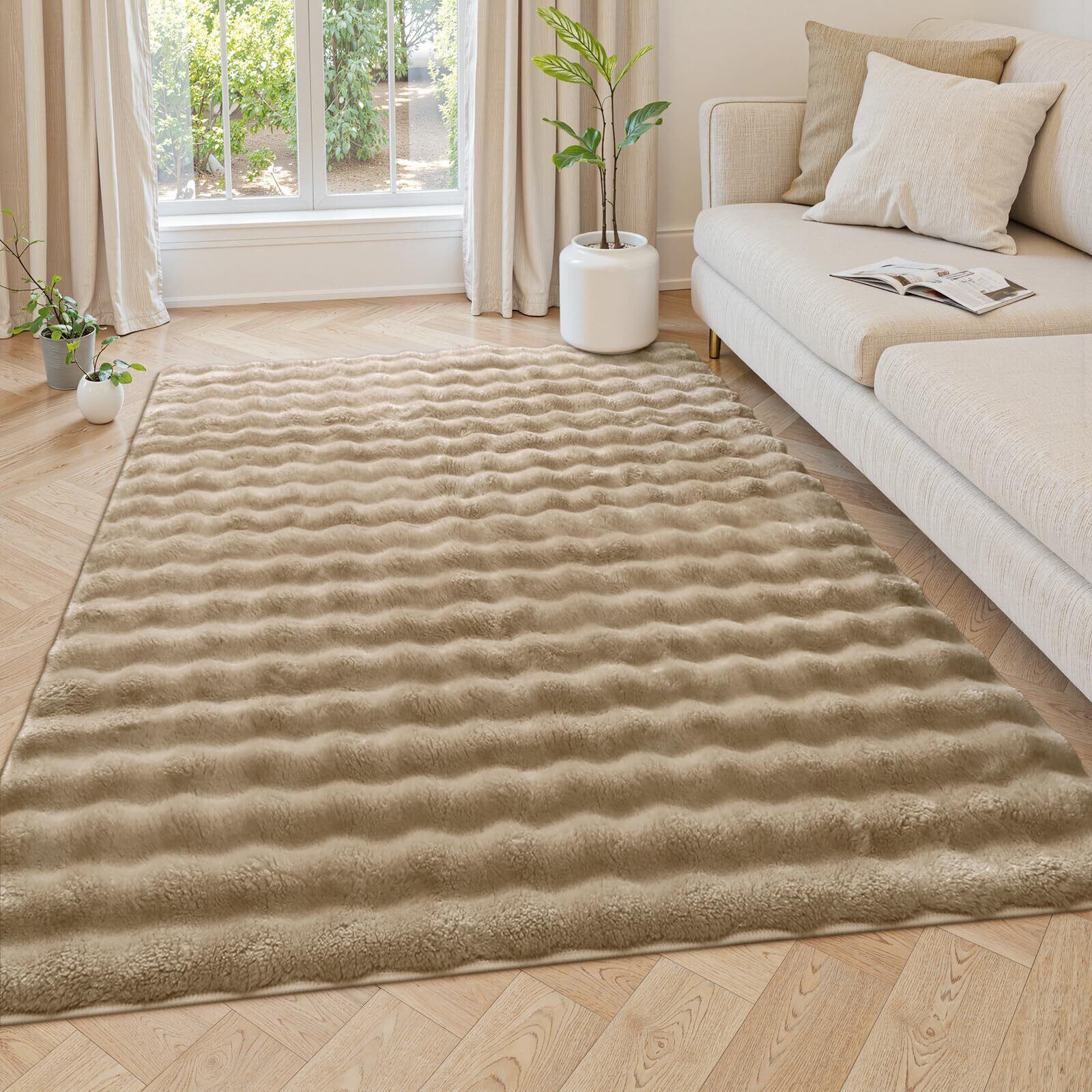 HAOCOO カーペット 約1.5畳 洗える ラグ 120х160cm ラビットファー調 厚手 シャギー ふわふわ 滑り止め 絨毯 防音 抗菌防臭 ホットカーペット対応 リビング ダイニング ラグマット 北欧 ライトブラウン