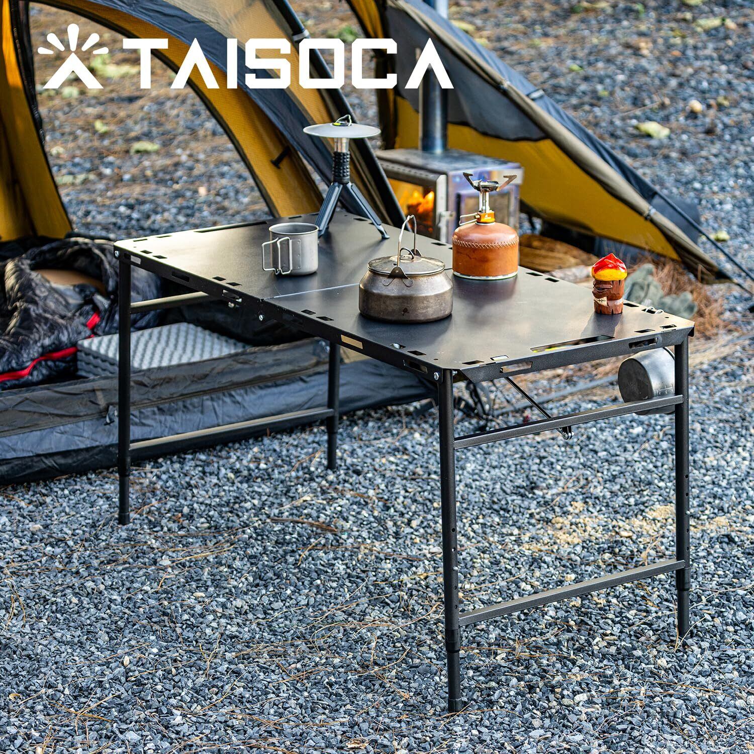 6. 安定性と安全性 本品はアウトドア環境を想定して設計されています。強化されたスチール製テーブル脚が、あらゆる天候条件下で強力なサポートを提供。防火・防水設計により、キャンプストーブやバーベキューコンロ、高温機器の傍での使用にも安心です。