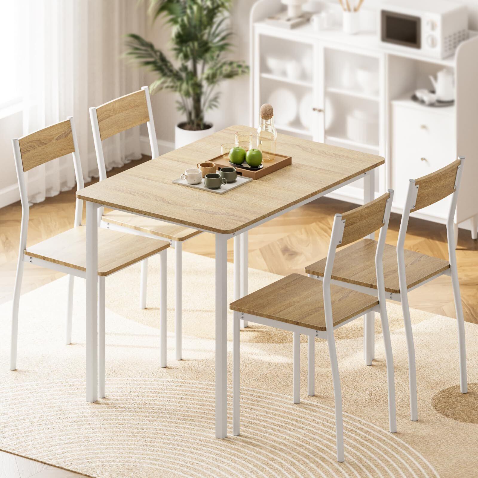 APPOLYN ダイニングテーブル 4人用 テーブルセット 机椅子セット 一人暮らし 幅110cm 広々木製天板 スチール脚 5点セット 食卓 リビング用 ナチュラル×ホワイト