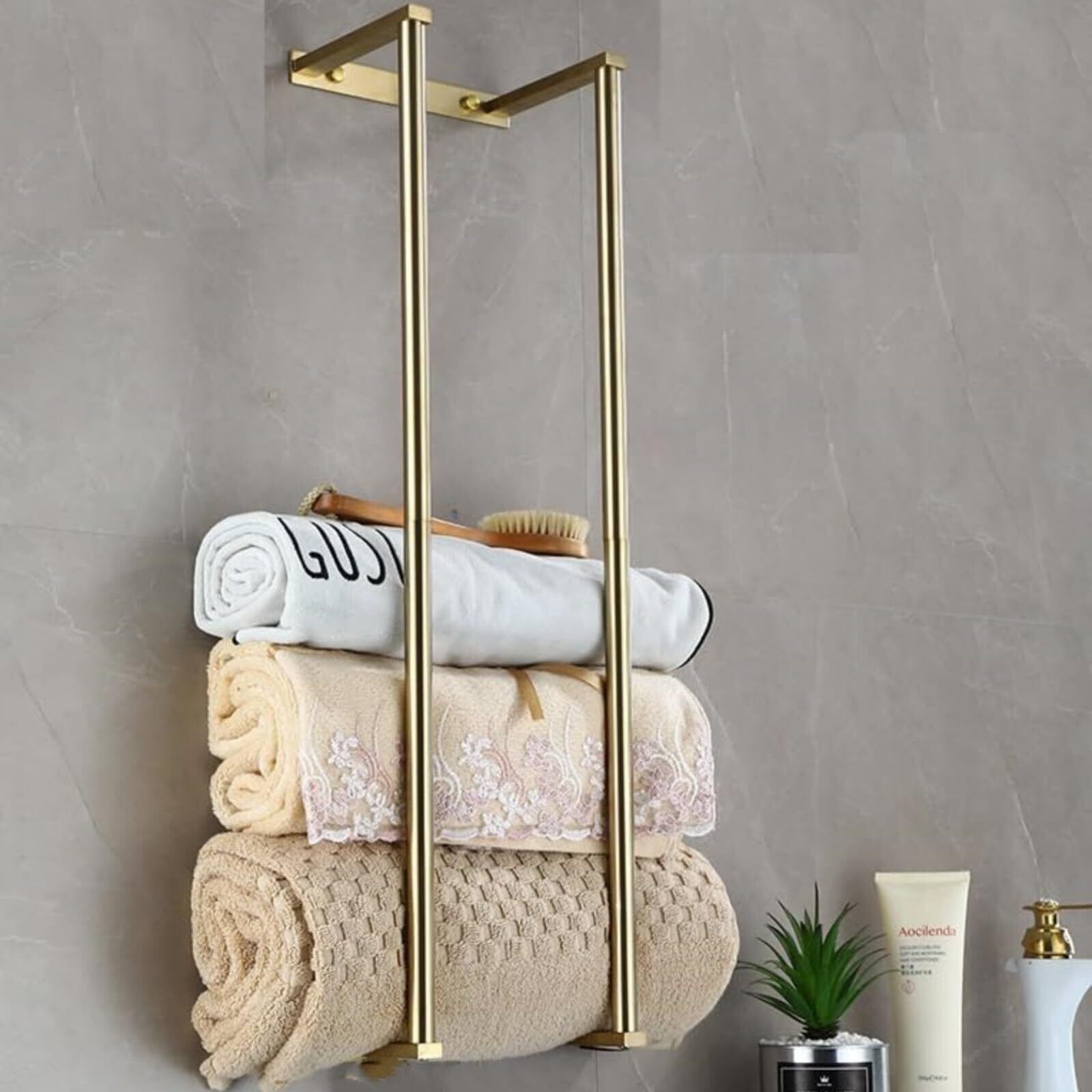 タオルラック 壁取り付け タオルハンガー タオル掛け バスルームタオル収納 バスタオルスタンド おしゃれ 丸めて収納ランドリーラック バスタオル置き タオル収納 タオルホルダー 取り付け簡単 省スペース コンパクト シンプル (ゴールド)