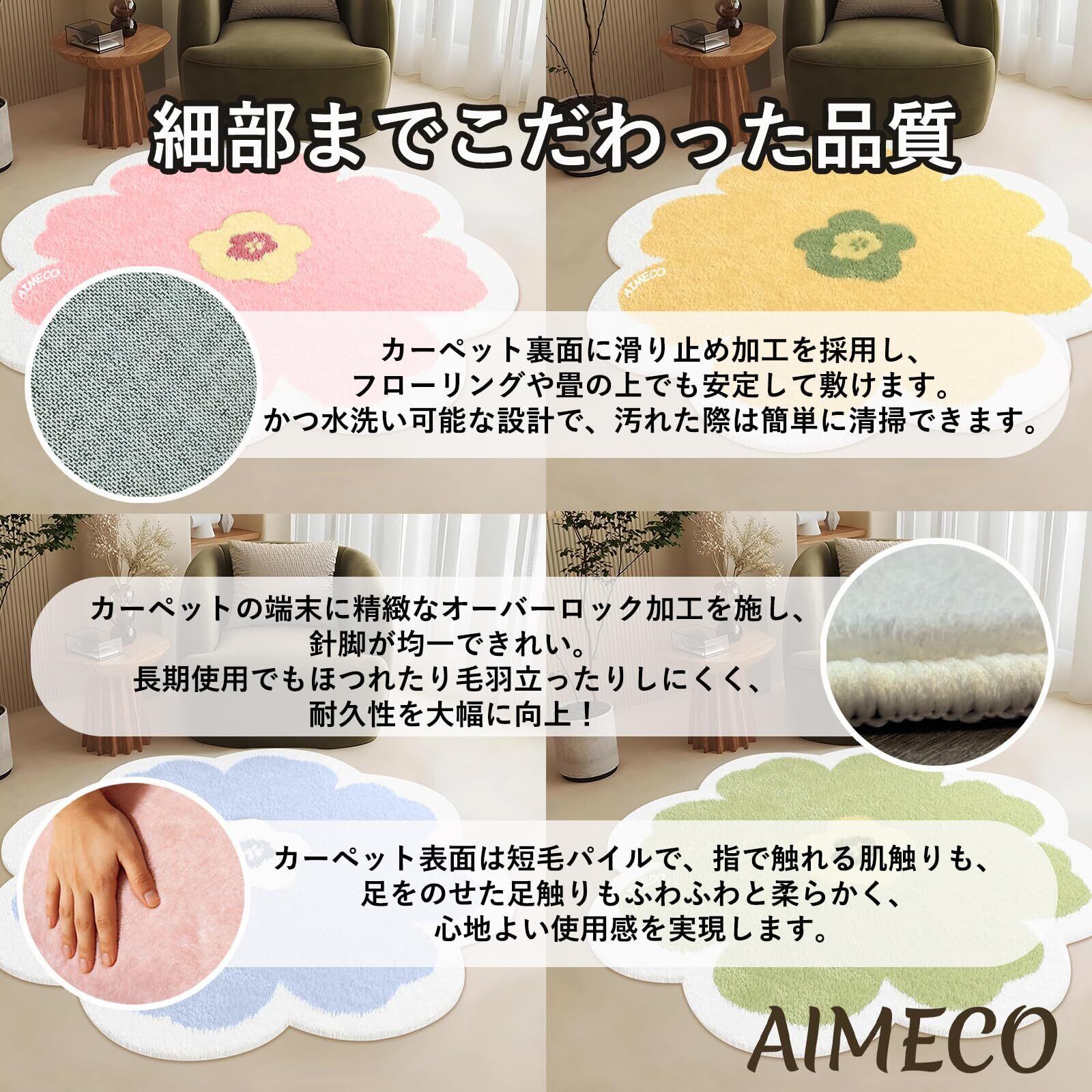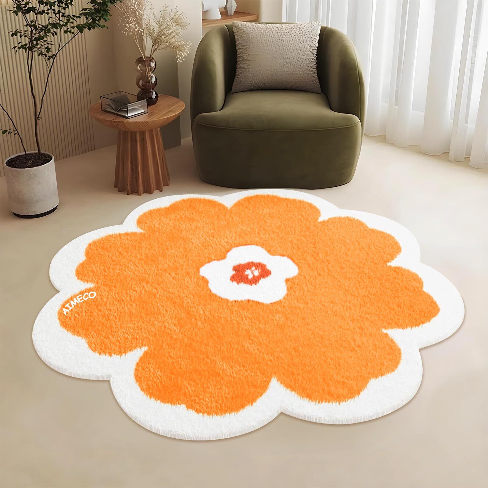 花形ラグ 橙 花柄カーペット 洗える絨毯 滑り止め付 子供部屋 短い起毛ラグマット可愛 い 和風リビング・ベッドサイド・寝室用 オールシーズン対応 オレンジ 直径120cm