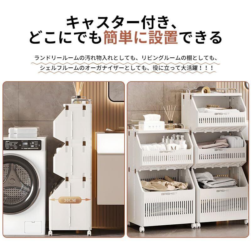 【移動便利】360度自由移動可能なキャスターは、洗濯時や掃除の際に非常に便利です。使用感も良く、長く愛用できる耐久性があるため、非常に実用的です。どんなに重いかごでも、軽い力で運べるので、忙しい日常をサポートしてくれるアイテムです。