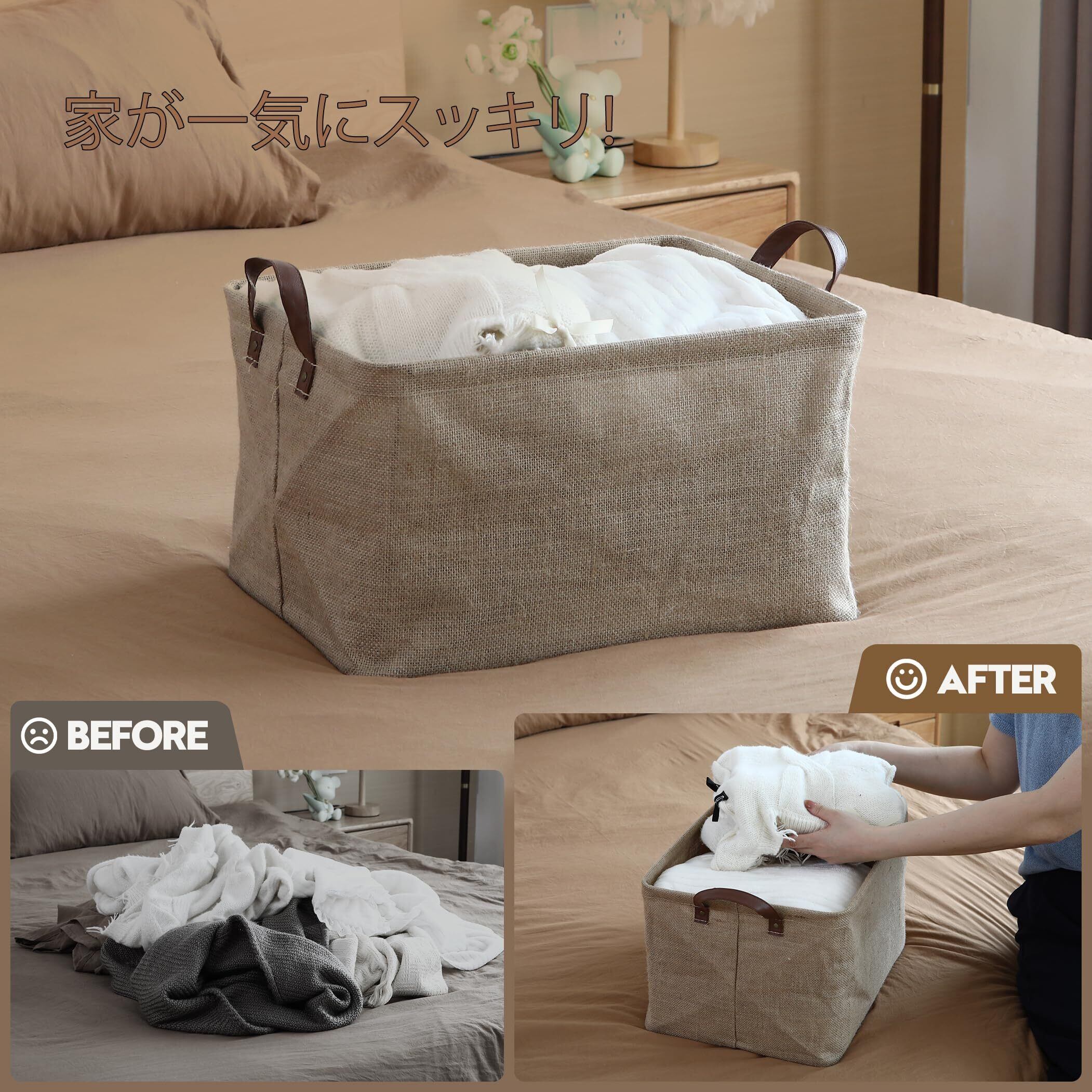 【材質】本品は人と環境に優しい環境にやさしいリネンを作られた収納バスケットです。リネン素材は通気性に優れており、湿気を吸収し、臭いを防ぎます。また、強度が高く、長期間使用しても形や色が変わりにくく、持続的な使用が可能です。