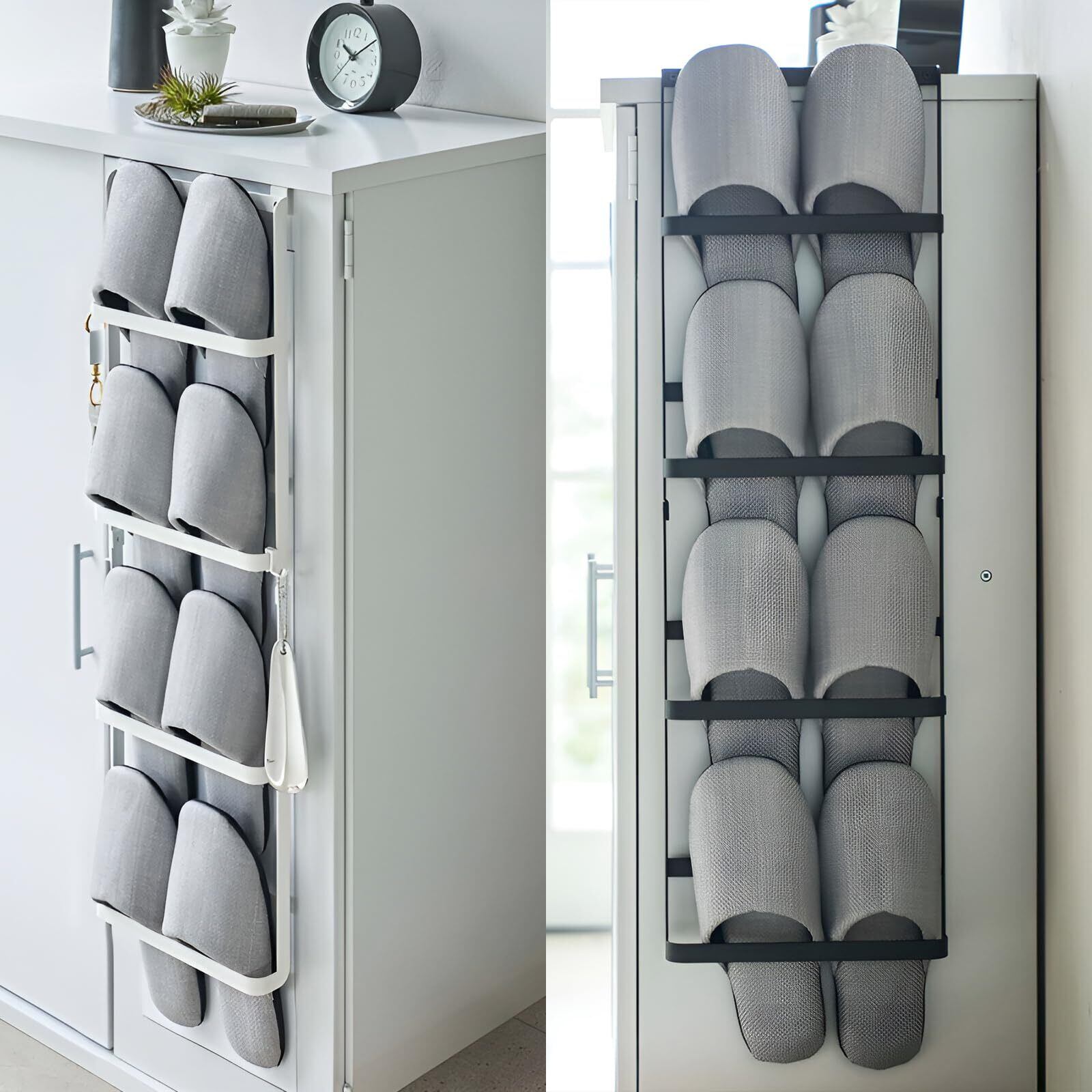 スリッパラック 壁掛け 3way スリッパ 収納 下駄箱扉&引っ掛け式 スリム スリッパホルダー 黒 サイド吊り下げ式シューズキャビネットフック付き スリッパ立て おしゃれ シューズラック狭い玄関 室内収納 玄関収納 壁面収納 扉収納 省スペース収納