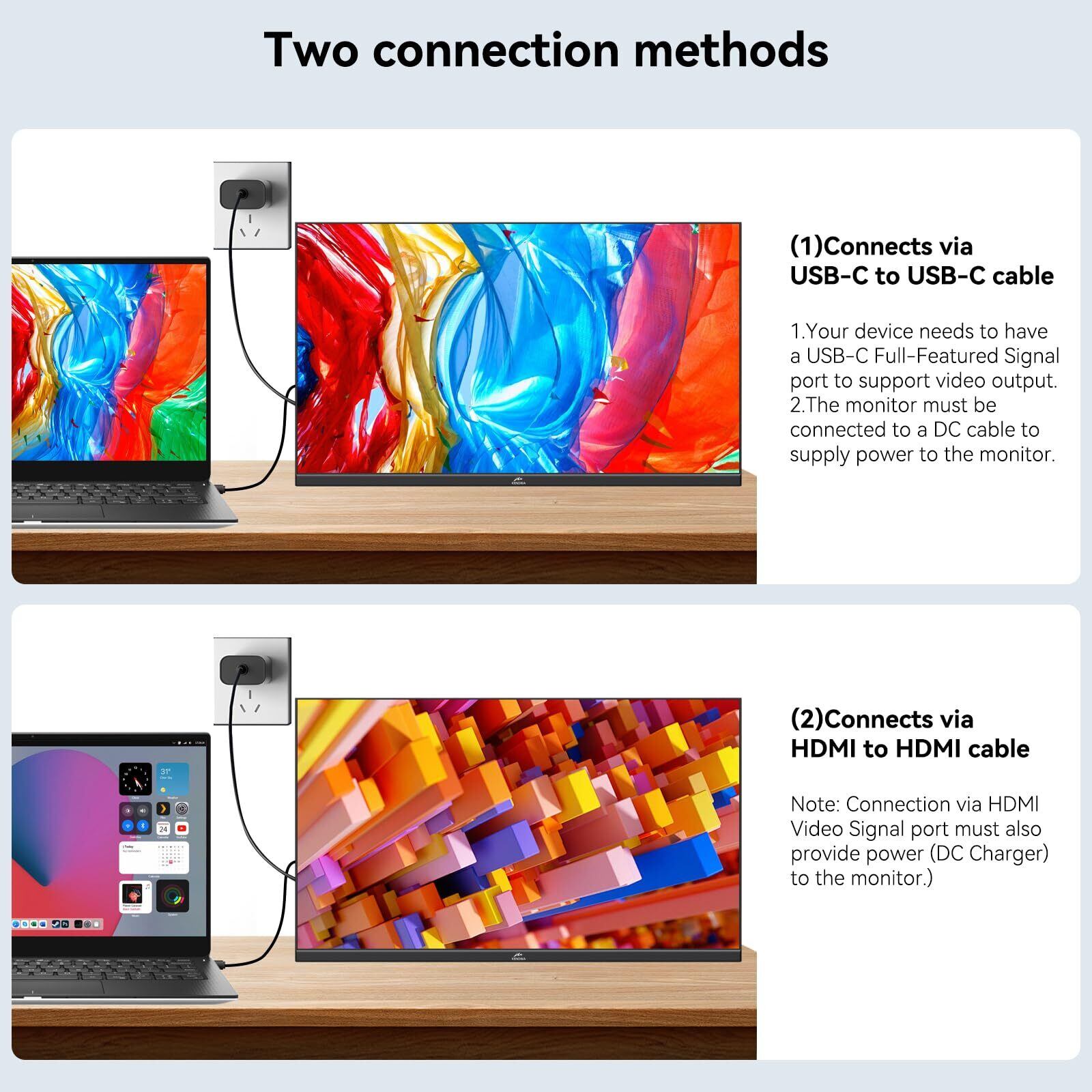 入力信号にHDMI/Type-C端子を使用する場合、DC電源アダプターを接続してモニターDCポートに電源を供給する必要があります。