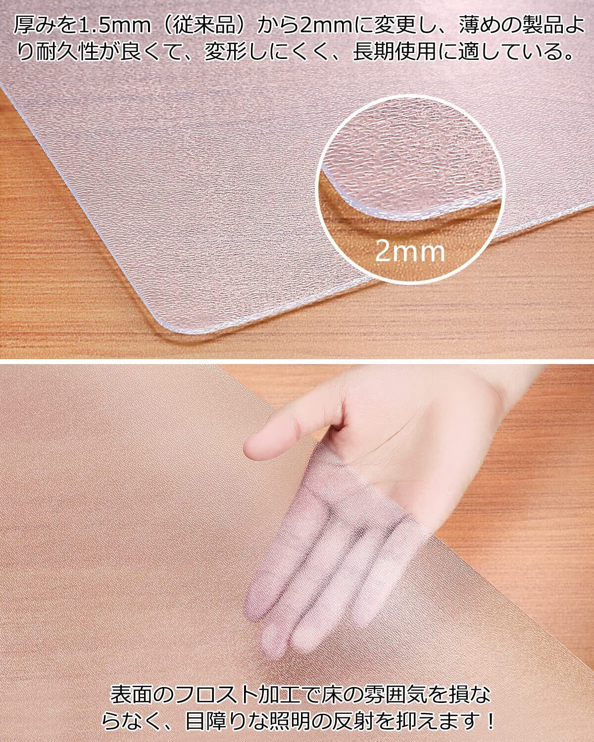 【半透明でどんな床にもなじみ】色は完全な無色透明で色移りしません、どんな床でも合うように設計しました、お部屋のデザインを損ないません。