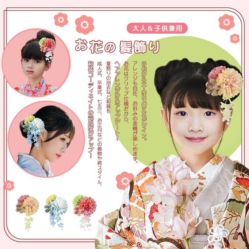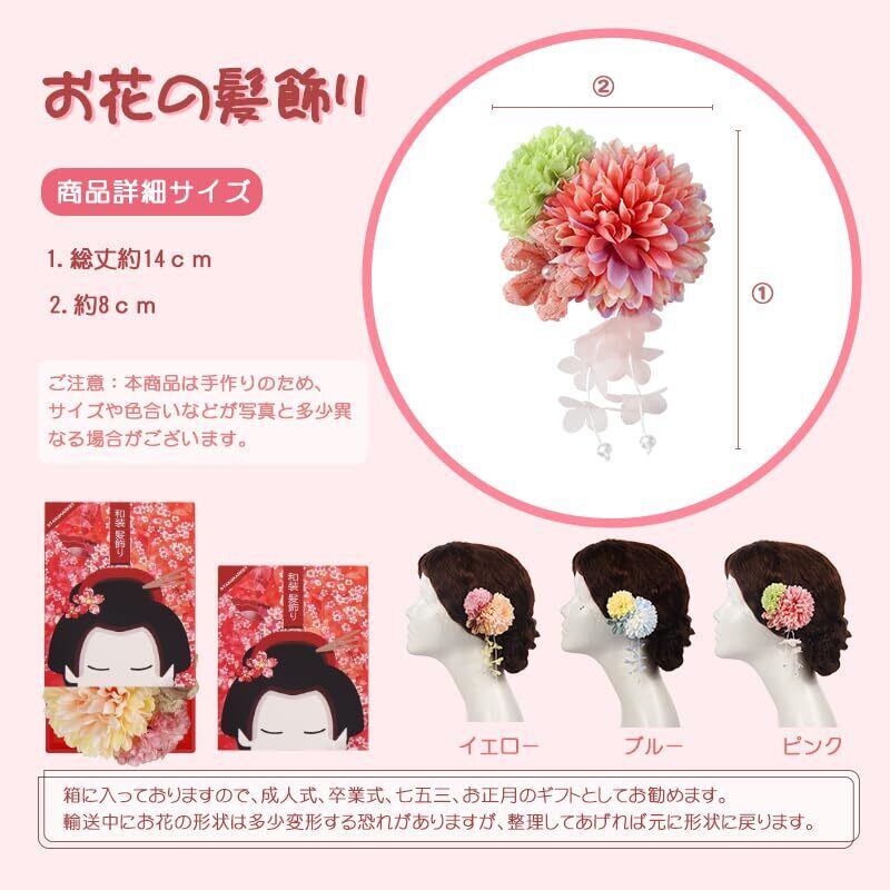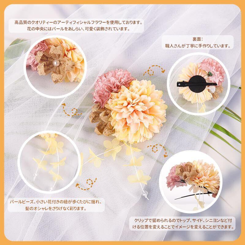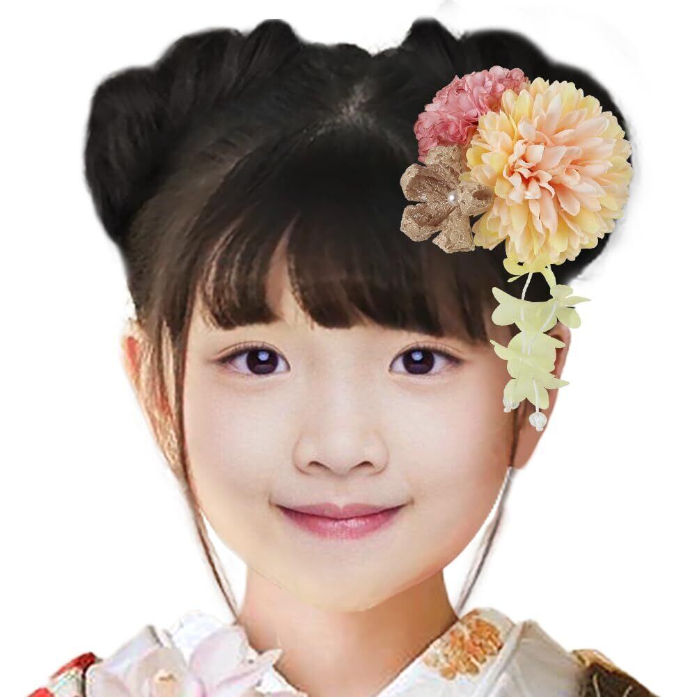 OTAKUMARKET 七五三 髪飾り 浴衣 成人式 髪 飾り 女の子 花 袴 着物 振袖 和装 卒業式 結婚式 髪留め 子供かんざし 和風 高級造花 ヘアアクセサリー3カラー (イエロー)