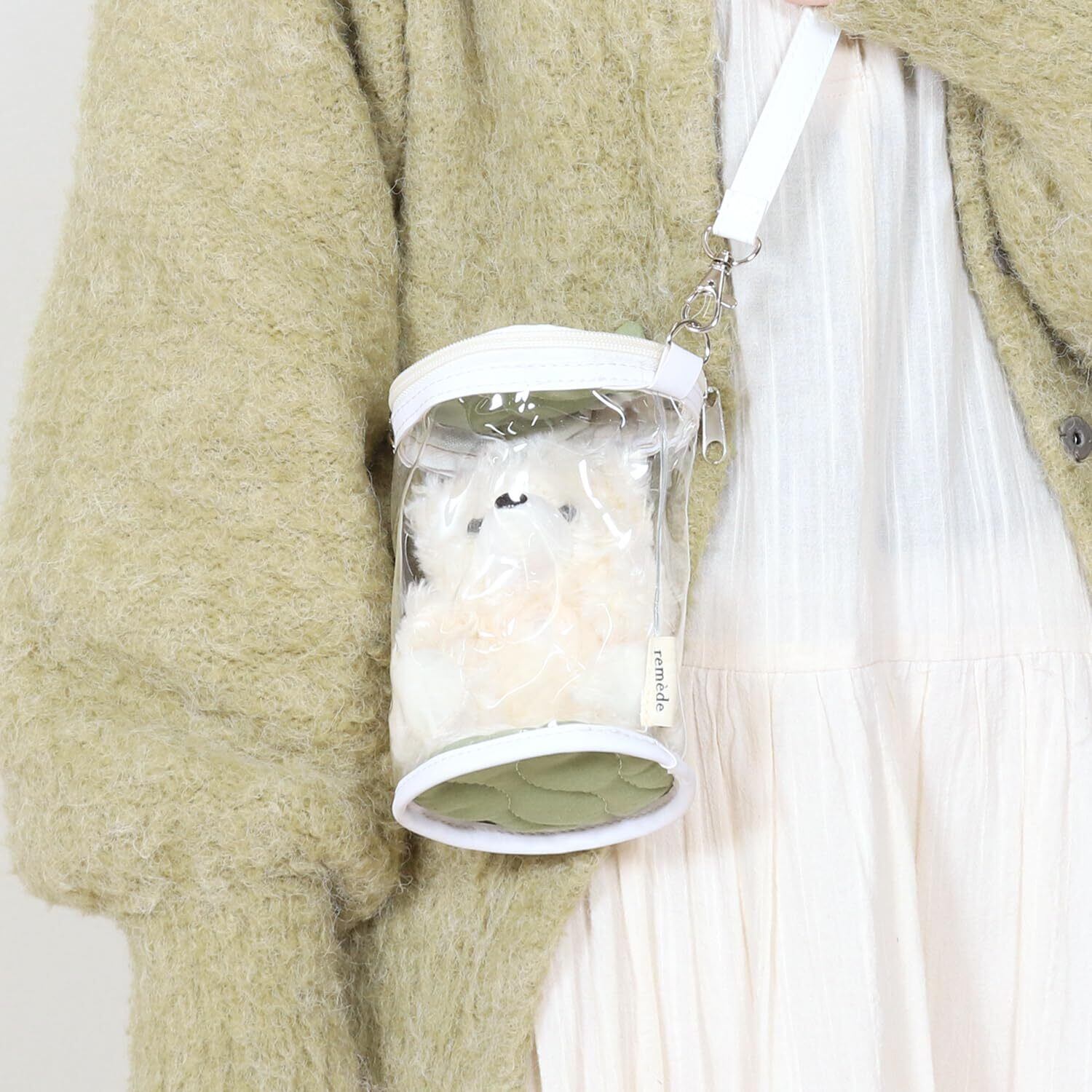 不二貿易 推し活グッズ ぬいぐるみバッグ 推しぬい 幅10.5×奥行9×高さ16.5cm グリーン 推し活 収納 メンカラ 推しカラー ぬいぐるみ クリアバッグ グッズ remede ルメッド 53936 18763
