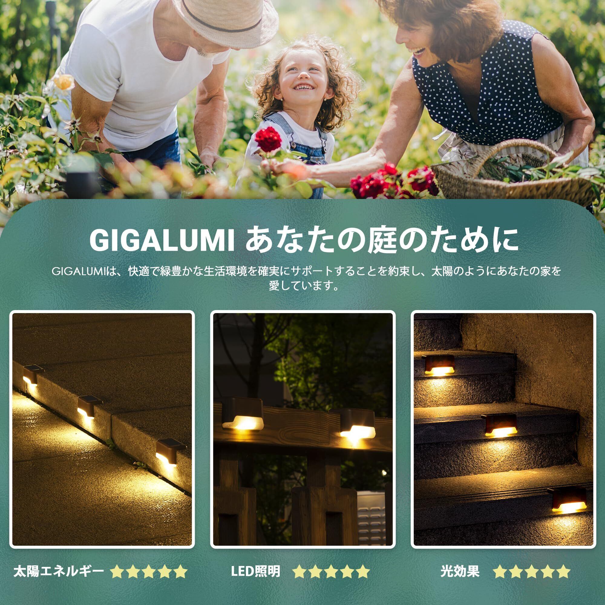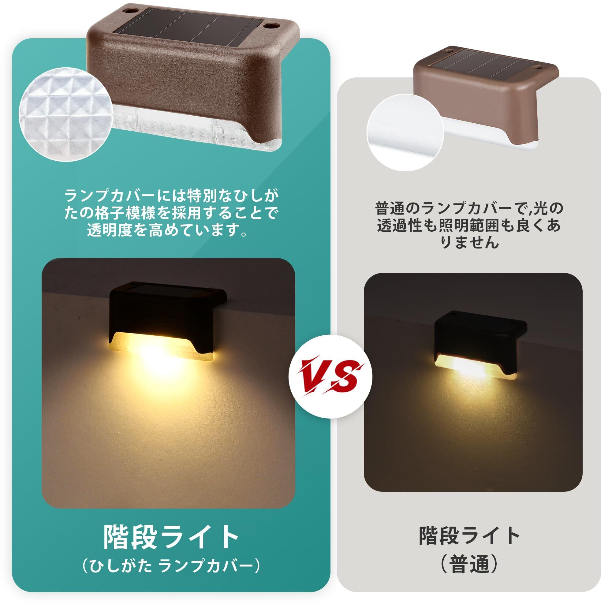 GIGALUMI ソーラーライト 屋外 階段ライト LED ソーラー デッキ ライト ガーデンライト IP67防水 フェンスライト アウトドア ライト テラスライト ソーラー充電 通路 警告 庭 ライト 玄関 歩道 軒 ガーデン 自動点灯 電球色 8個セット(ひしがた ランプカバー)