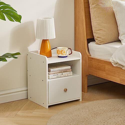 IBUYKE ナイトテーブル サイドテーブル ベッド サイドチェスト ベッドテーブル 引き出し付き 小型テーブル おしゃれ 木製 ソファサイドテーブル ベッド周り収納 組立簡単 北欧スタイル ベッドルーム リビングルーム 白い JPWNS005W