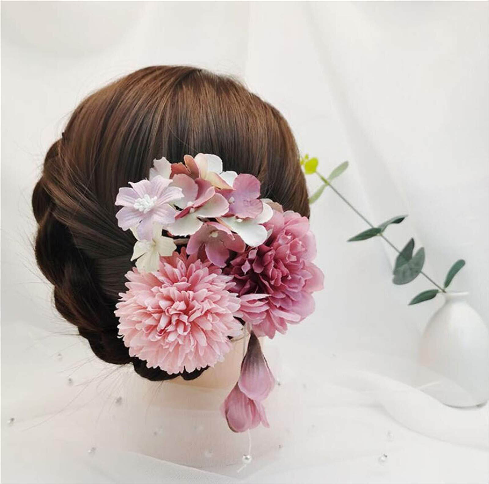 和装 髪飾り 造花 フラワー ヘアピン ヘアクリップ 七五三 成人式 卒業式 結婚式 振袖 浴衣 袴 着物 和装 ヘアアクセサリー 3個セット (ダークピンク)