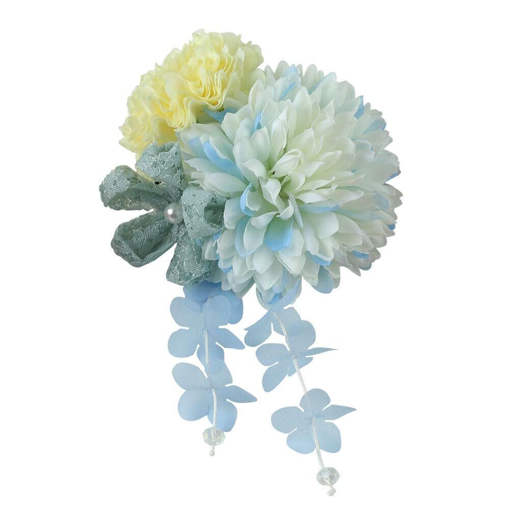OTAKUMARKET 髪飾り 浴衣 七五三 成人式 髪 飾り 女の子 花 袴 着物 振袖 和装 卒業式 結婚式 髪留め 子供かんざし 和風 高級造花 ヘアアクセサリー3カラー (ブルー)