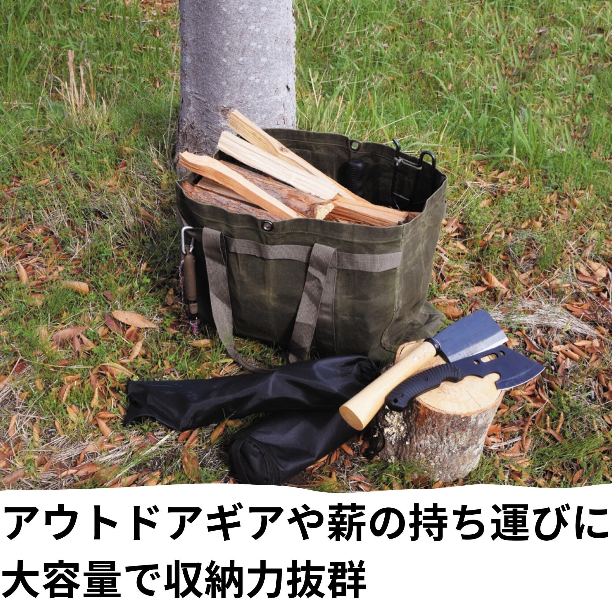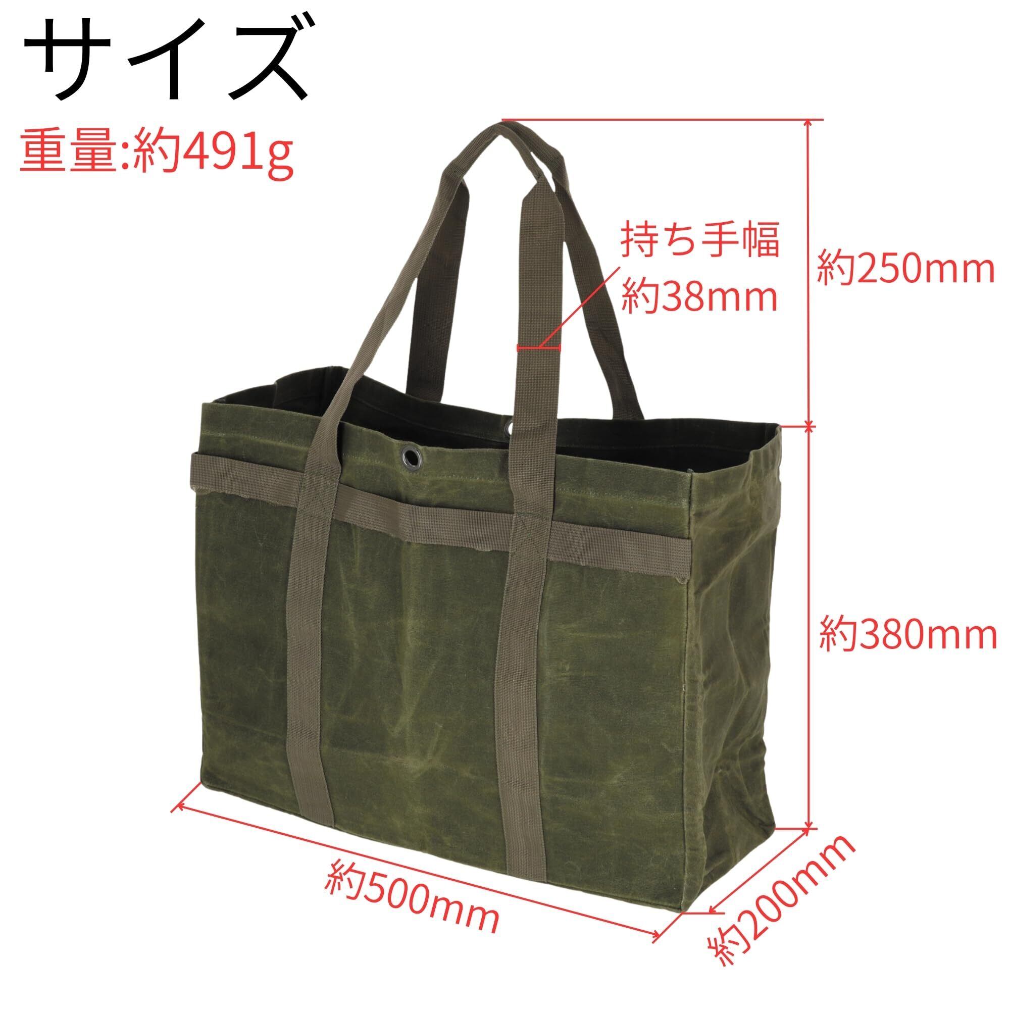 高儀(Takagi) KANUCHI OUTDOOR パラフィン帆布 ラージ トートバッグ カーキ 口を縛れるハトメ付き 横向きのループ付き 耐久性 撥水性 収納力 大容量 鞄 アウトドア キャンプ 薪バッグ 薪ケース ツールバッグ 持ち運び