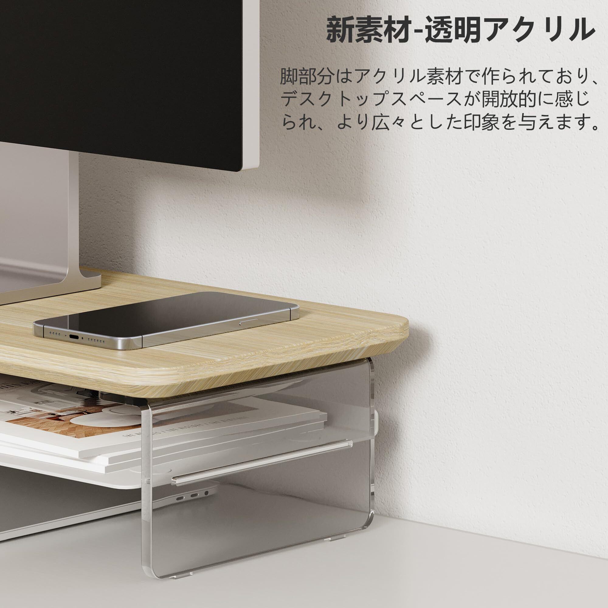 Fenge モニター台 モニタースタンド 卓上 机上台 パソコン台 PC台 机上ラック 60cm横幅 2段 木製天板 アクリル製脚 デスクトップ用 机上 モニタースタンド 机上台 pcモニター台 パソコンラック 卓上 収納 整理整頓 オークG04Y2063C