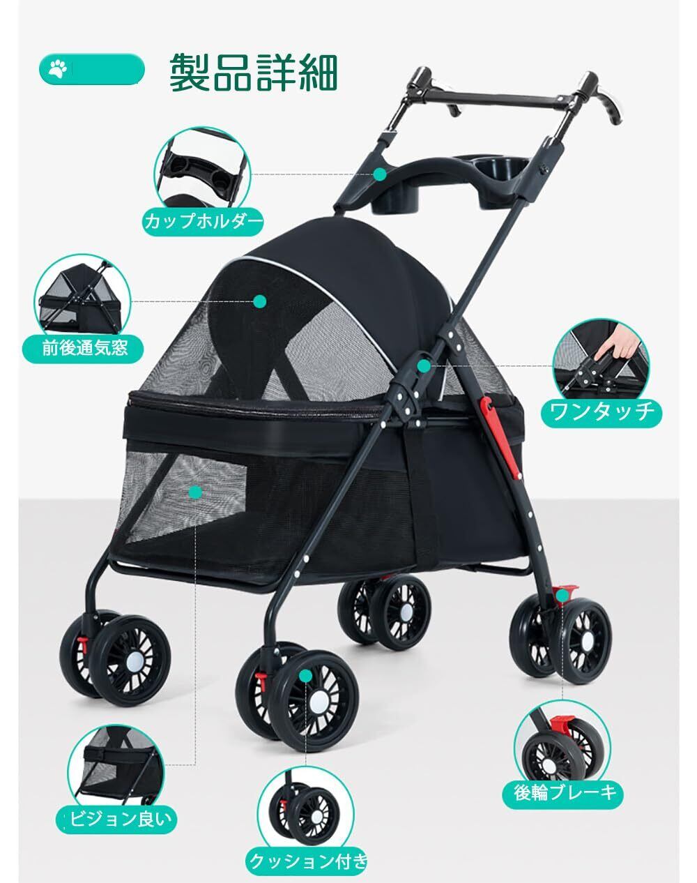 JINETES ペットカート 犬 4輪 犬用カート バギー 小型/中型犬 猫 組み立て簡単 ワンタッチ折り畳み コンパクト收纳 軽量 前輪360°回転 後輪ブレーキ付 耐荷重18KG 外出便利