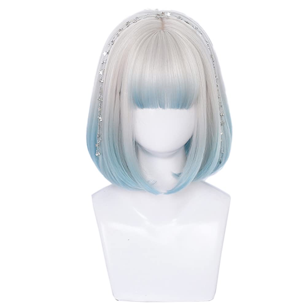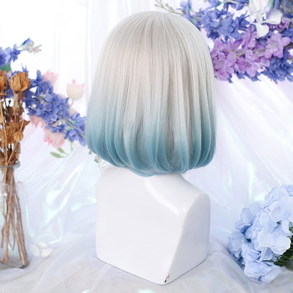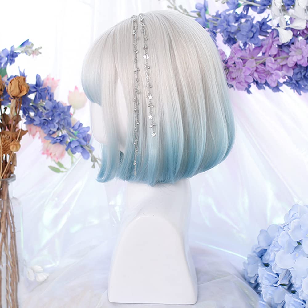 ロリータウィッグ ゴスロリ ショートボブ ゴシック コスプレウィッグ 白 青 宝石 森ガール グラデーション 原宿風 ハロウィン ホワイトブルー 仮装ウィッグ 耐熱 お姫 かつら
