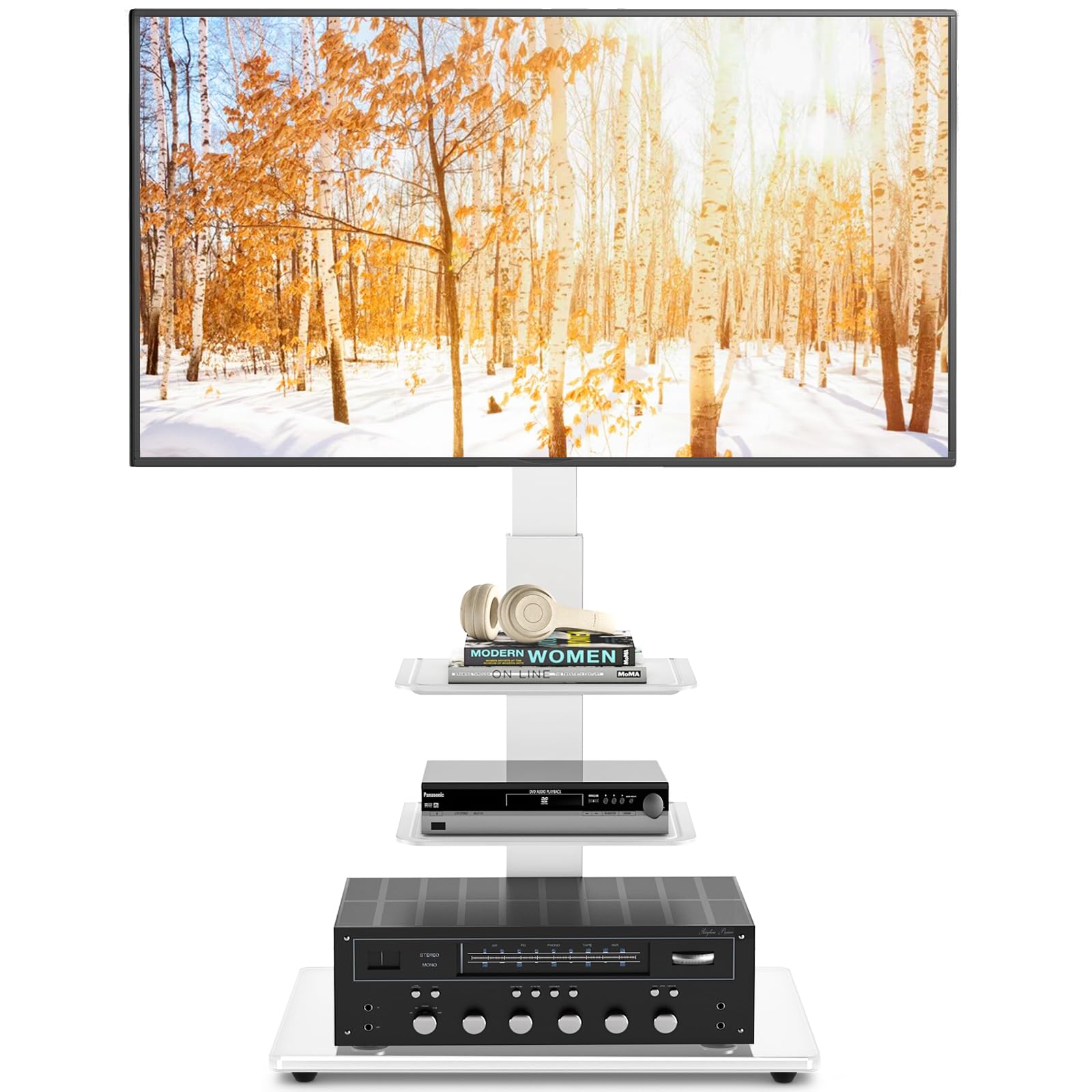 Rfiver テレビスタンド tvスタンド テレビスタンドロータイプ 32-70インチ対応 3段 高さ調整可能 ラック左右回転30° 強化ガラス 耐荷重50 KG ホワイト 家用 展示用