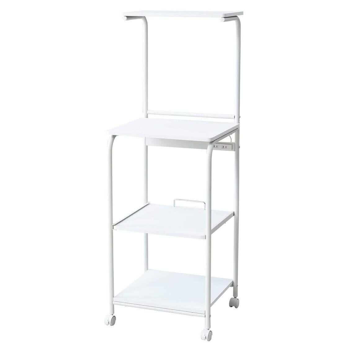 山善(YAMAZEN) レンジラック 幅48×奥行41×高さ141cm スライド棚 2口コンセント ストッパー付きキャスター レンジ台 ラック トースターラック 組立品 サンドホワイト/マットホワイト GRW-48R(WH)