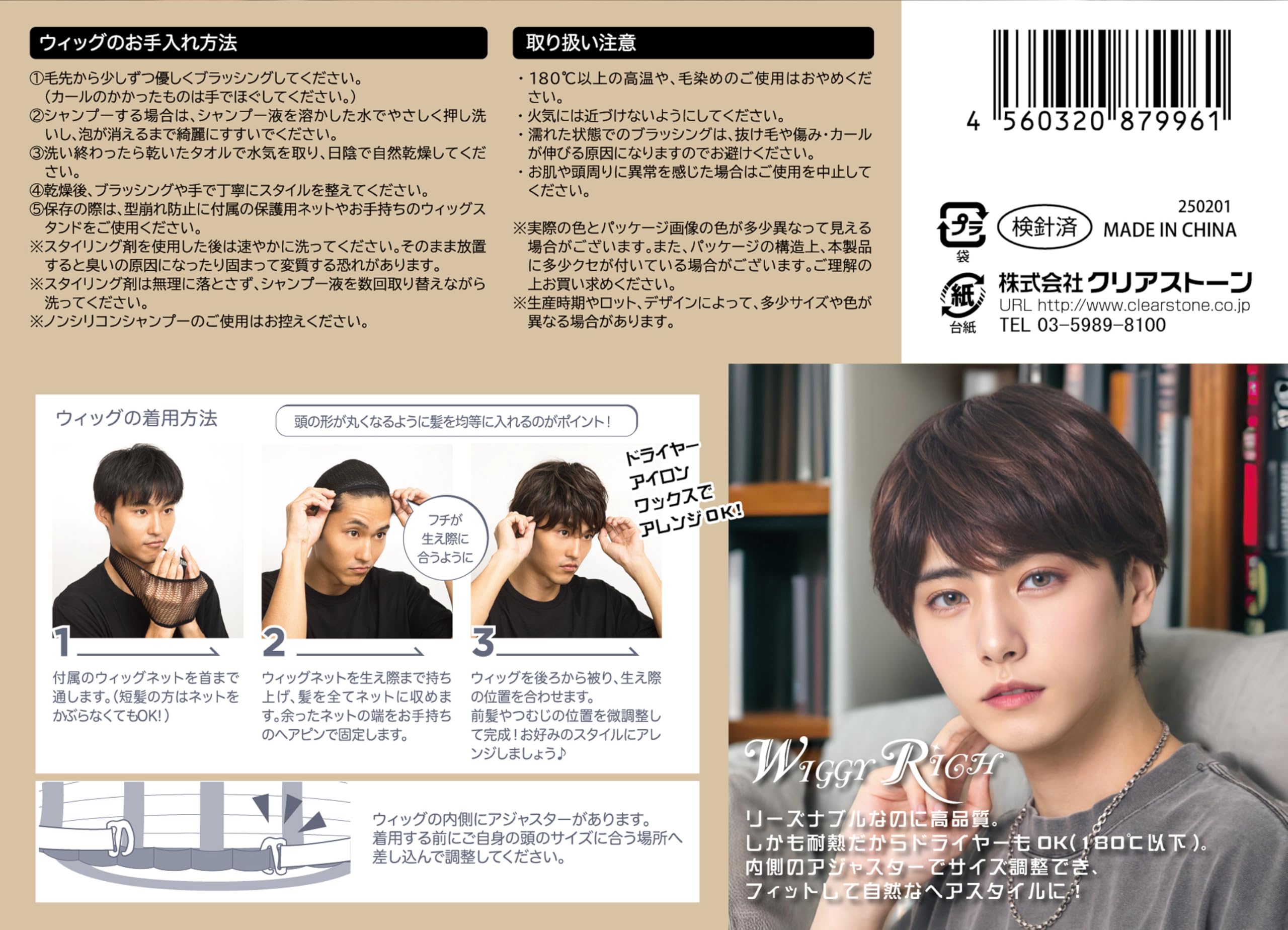 【注意事項】取扱い注意点 ・180℃以上の高温、毛染め、人毛用スプレーのご使用はおやめください。