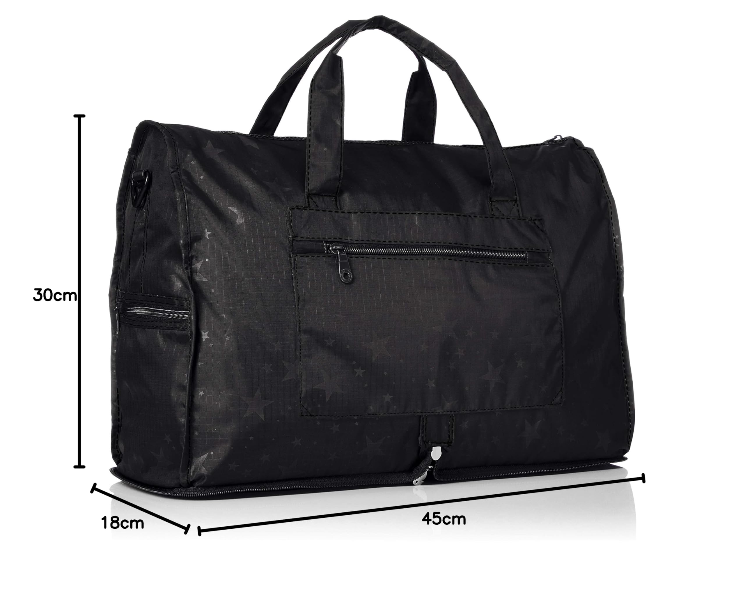 コンパクトに折りたためるスヌーピーのボストンバッグ。性別や年齢を問わないシンプルなデザイン。使わない時は小さく畳んで持ち運べるので、荷物が増える旅行の際などにとっても便利。スーツケースのキャリーバーを通せる機能付き。
