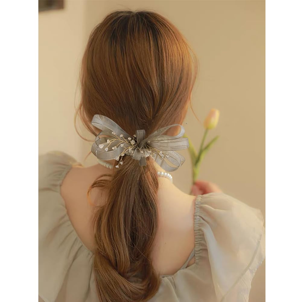 FASELE ヘアクリップ 髪飾り チュールリボン ヘアアクセサリー 森ガール 女性 子供 誕生日 発表会 撮影用 結婚式 フォーマル 通勤 通学 パーティー 1PC