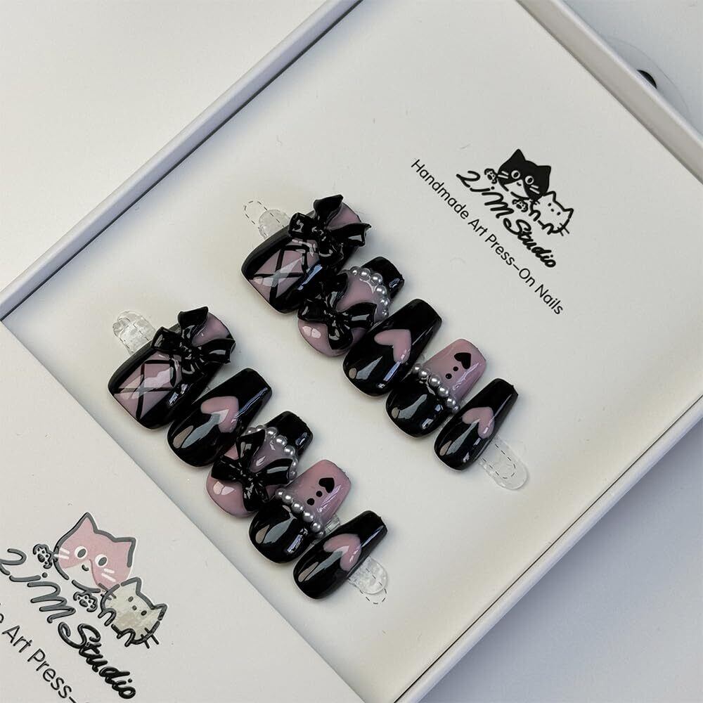 ネイルチップ 10枚入 職人仕上げ 和風ミニマルデザイン 上品シンプル ドット柄 リボン ハート スター 花火モチーフ 手作りサロン級 フォトウェディング 結婚式 成人式 オフィスネイル 卒業写真 デート ショッピング パーティー 高級レストラン 両面テープ・木棒・爪やすり付き 人気つけ爪 (リボンストラップ, S)