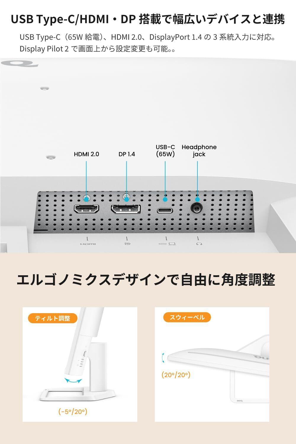 USB Type-C/HDMI・DP搭載で幅広いデバイスと連携:USB Type-C(65W給電)、HDMI 2.0、DisplayPort 1.4の3系統入力に対応。Display Pilot 2で画面上から設定変更も可能。