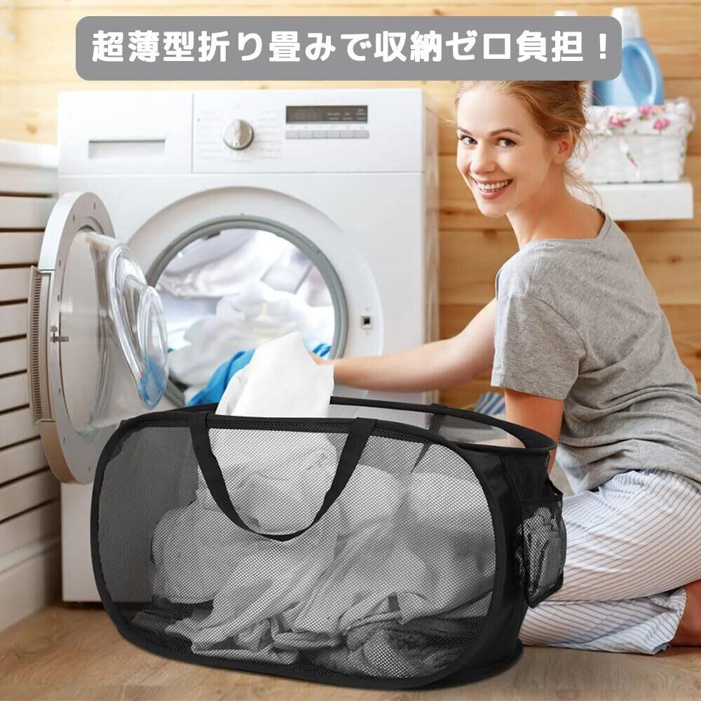 LIKENNY 洗濯カゴ ランドリーバスケット ランドリーバッグ メッシュ 脱衣カゴ 収納 折りたたみ 大容量 軽量 省スペース 収納 持ち運び可能 洗濯カゴ メッシュ 衣類収納 旅行 ゴミ箱 横型 36×36×58cm(ブラック)