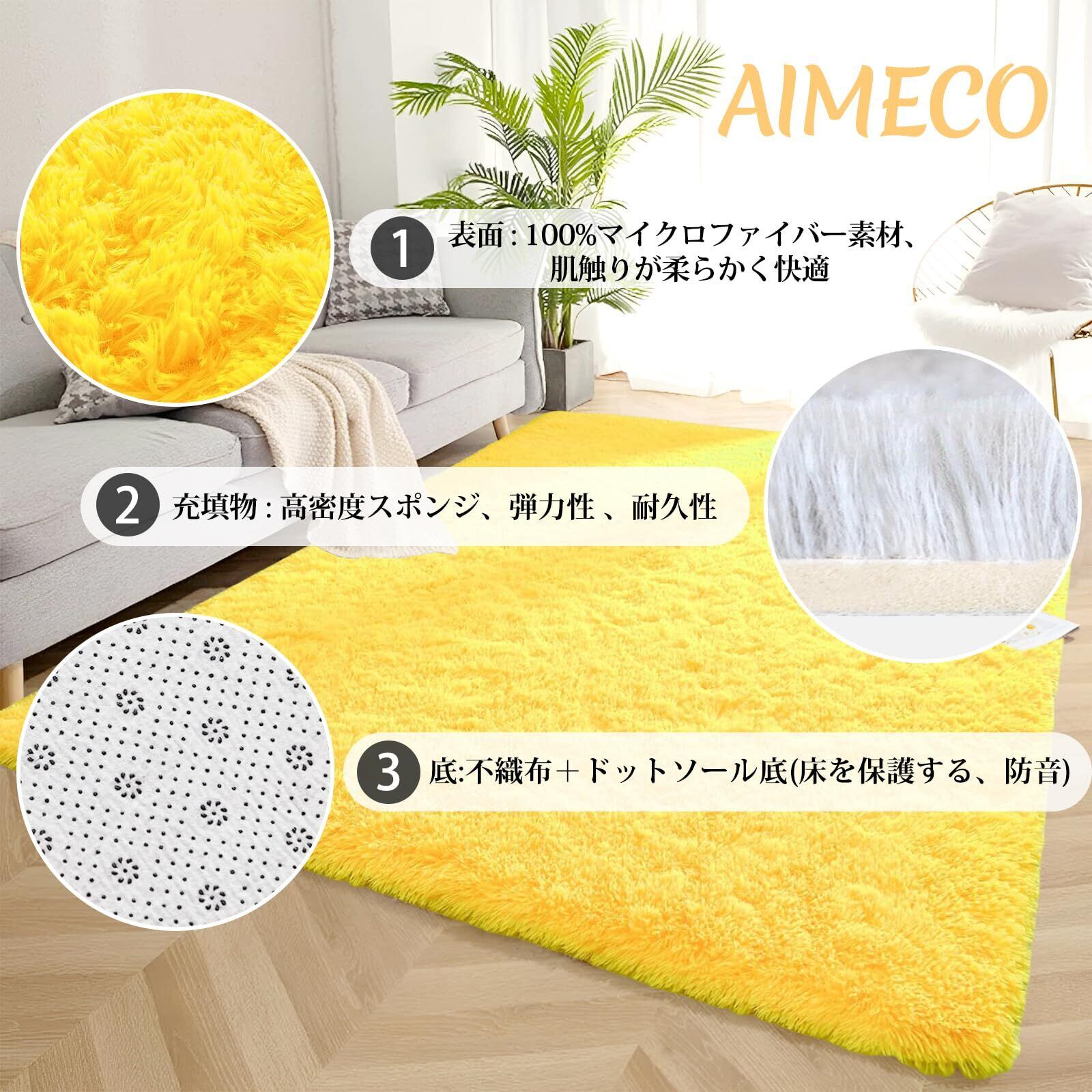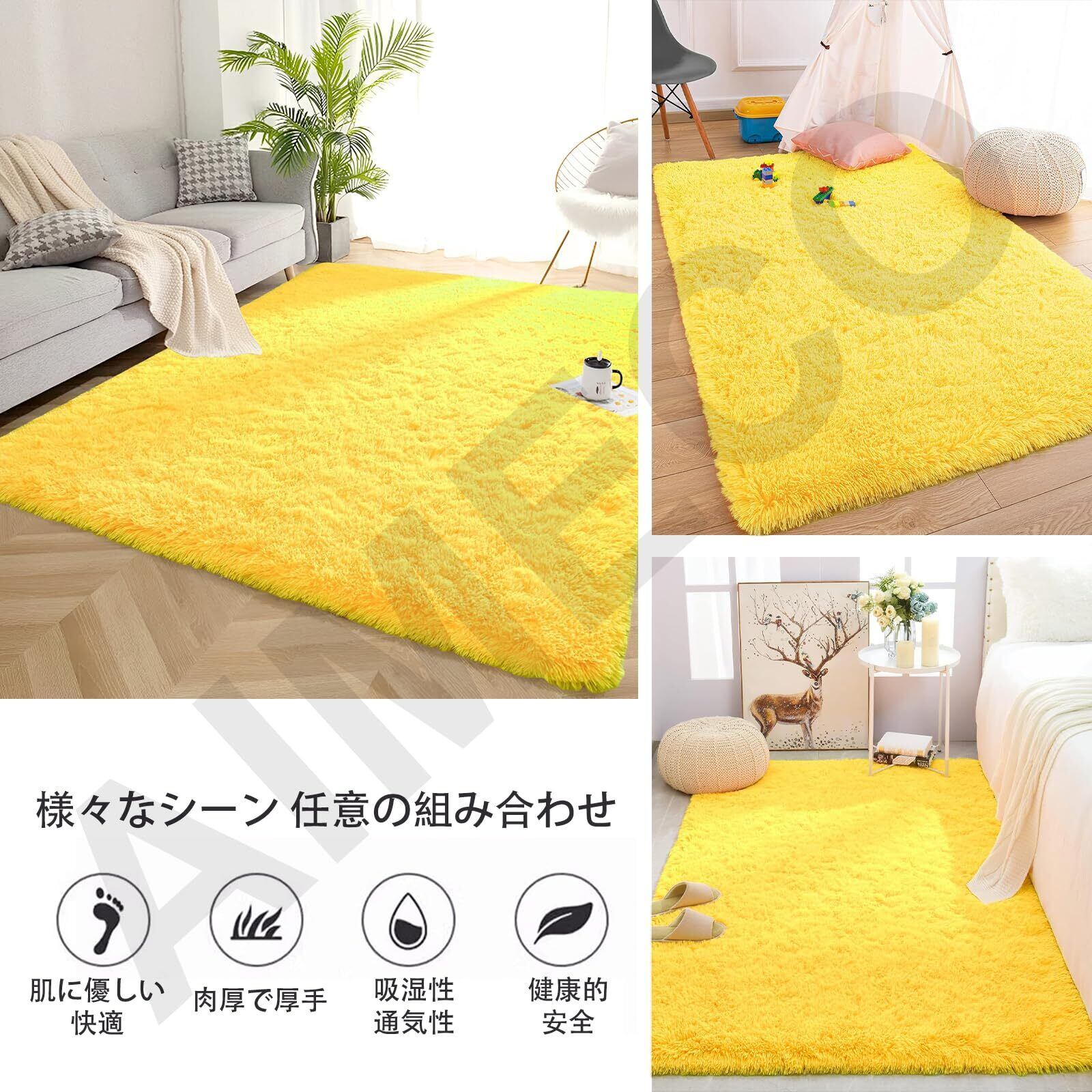 AIMECOラグ 約1.5畳 黄色 カーペットシャギーラグマットふわふわ 北欧おしゃれ じゅうたん 絨毯 リビング・子供部屋・寝室用 オールシーズン対応 120*200CM イエロー