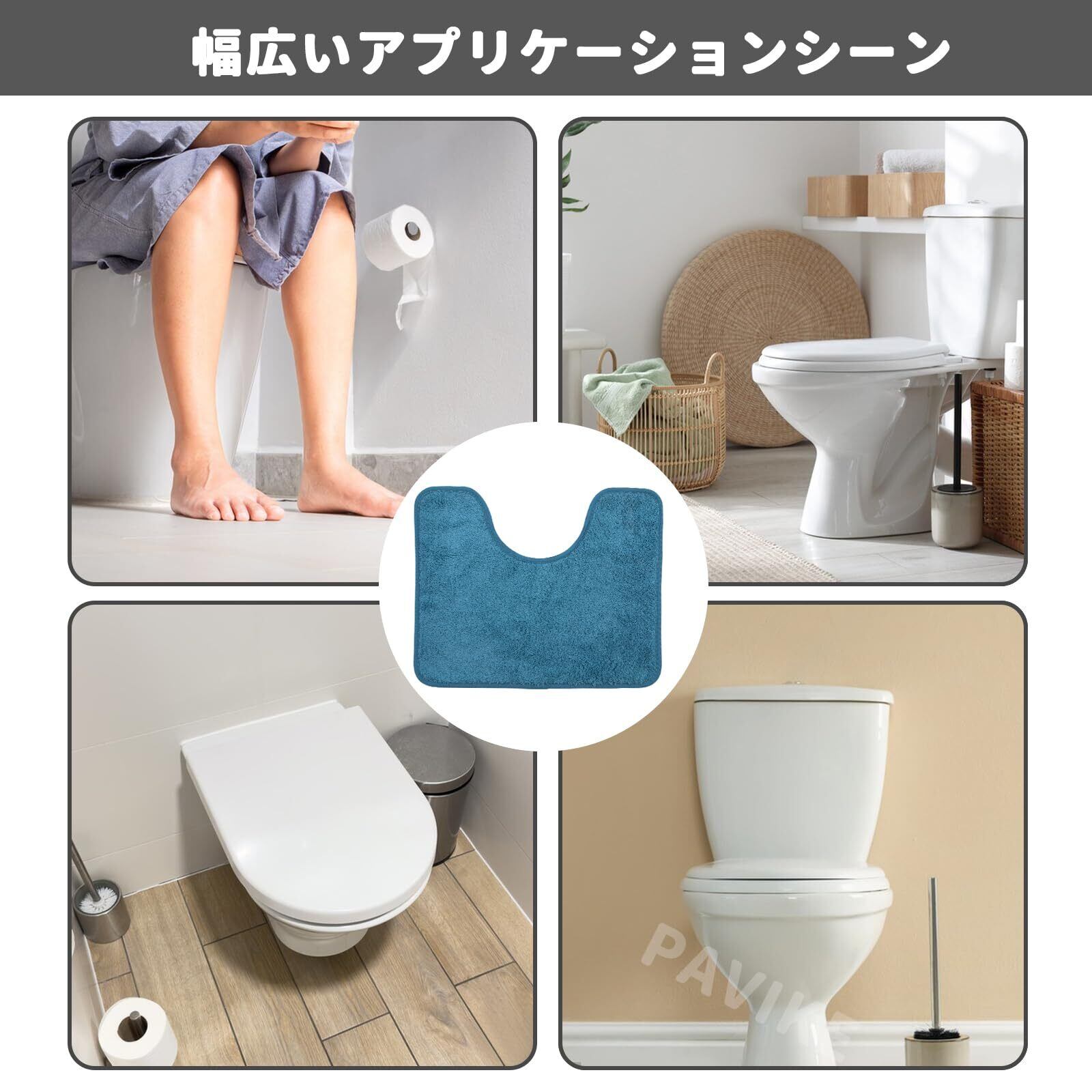 PAVIKE トイレマット u型 toilet mat おしゃれ 洗える トイレマット-北欧 カーペットトイレ 約50cm×40cm 無地 人気 浴室吸水マットトイレ 滑り止めドアマット家庭トイレ用