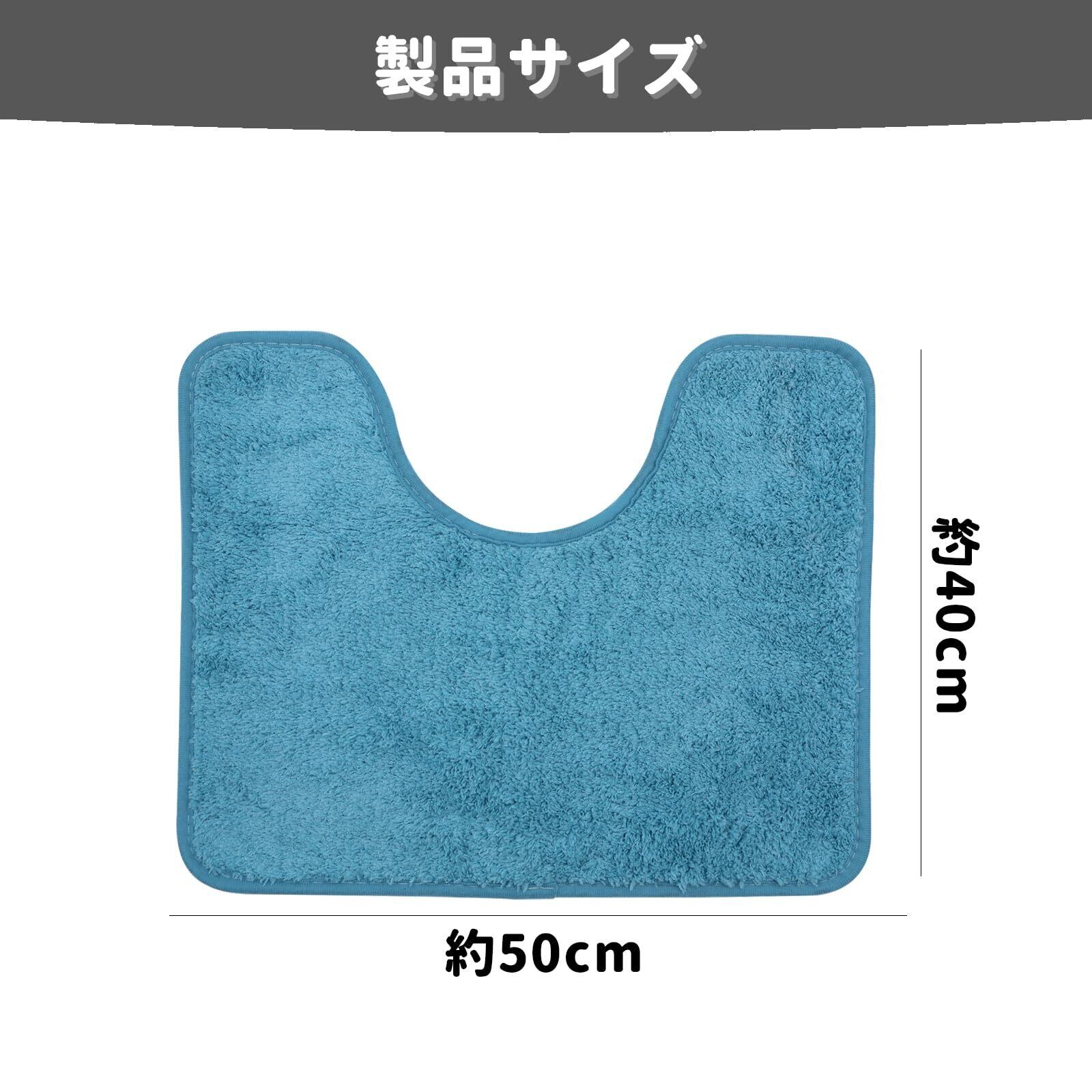 【U 字型人間工学設計、多様なトイレに適合】ブルーの U 字型トイレマットは約 50×40cm で、人間工学に基づく U カットが特徴です。市販の多くのトイレベースにフィットするため、購入前に自身のトイレサイズを確認してください。地面に密着して汚れやすい部分をしっかり覆い、清掃死角を大幅に減らし、U 型トイレマットの使い勝手を最大限に高めます。