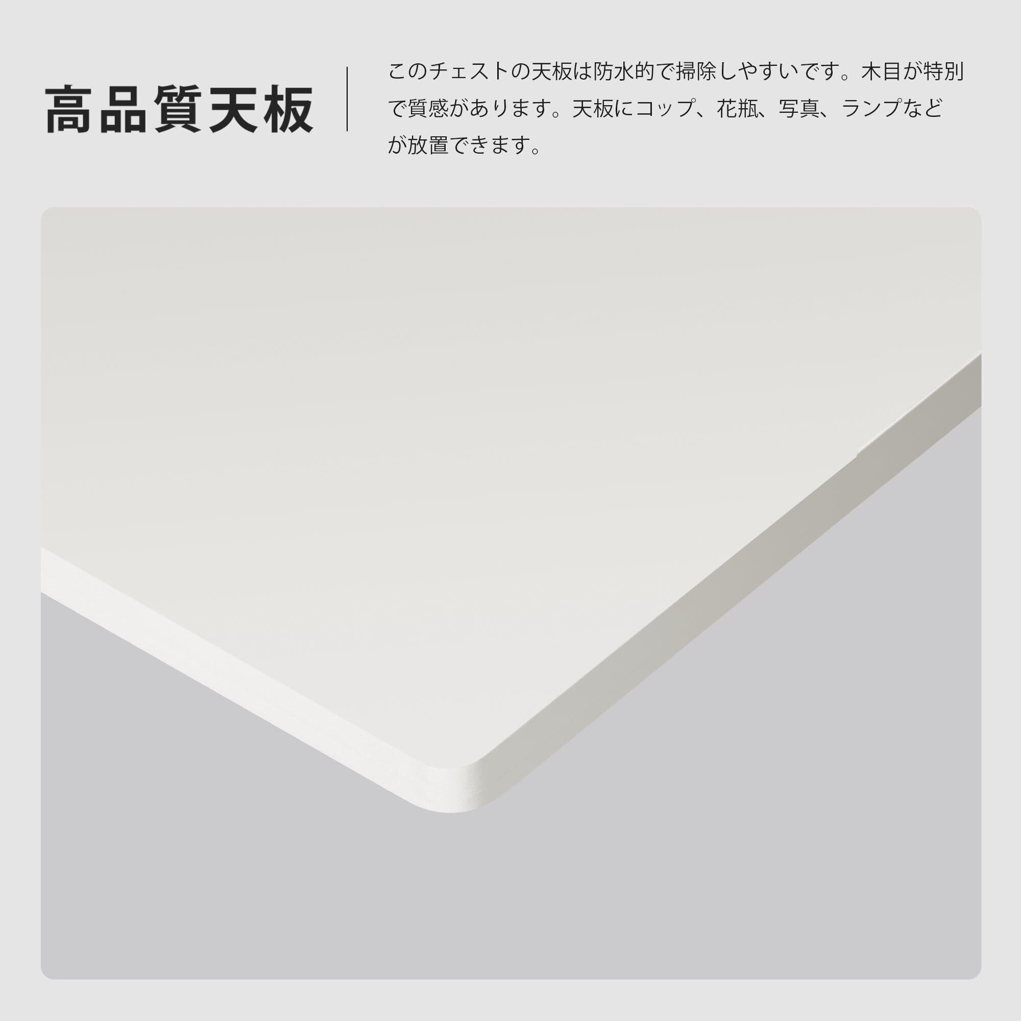 【注意】直射日光の当たる場所に収納棚を置くのは避けますとお勧めます。【収納力と美しさを兼ね備え】天板が二重になっているので、手に取るものが多くなり、収納スペースが増えました。引き出しが五つあるので、たっぷり収納する大容量を持ち、シャツやスカートなどの衣類をすっきり納めます。それにスリムタイプのチェストは部屋の隙間に置くことができ、省スペースで、空間を有効的活用!