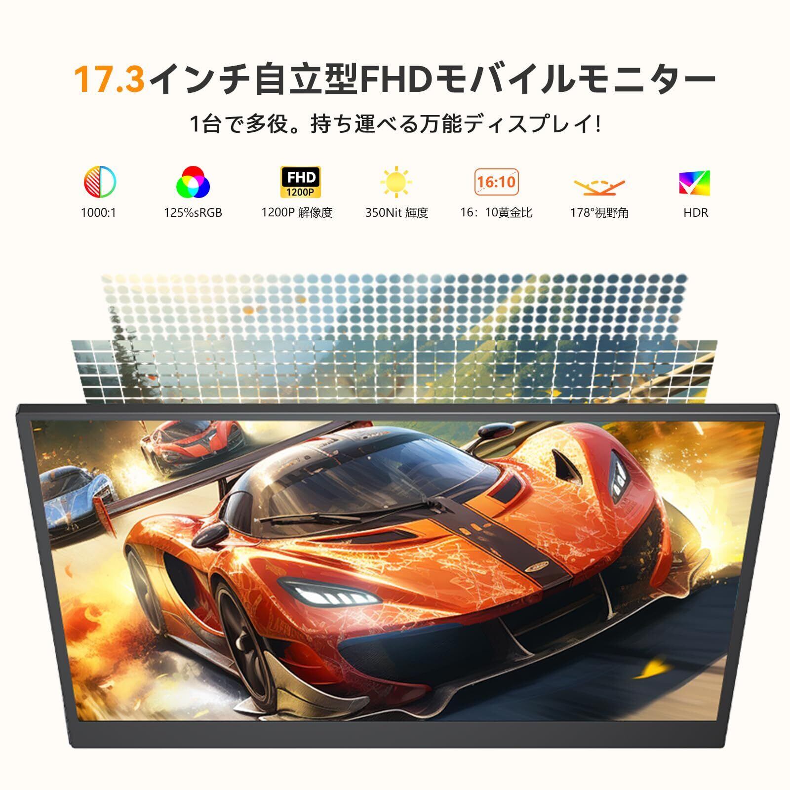 EVICIV モバイルモニター 17.3インチ FHD 350Nit 高輝度 非光沢 1920x1200 人気 ポータブルモニター 自立型 スタンド付き 125% sRGB 広色域 1000:1 黄金比16:10 モバイルディスプレイ VESA対応 壁掛け可能 Type-C/mini HDMI搭載 持ち運び ゲーミング サブモニター XBOX/Switch/PC/Macなど対応 ギフト