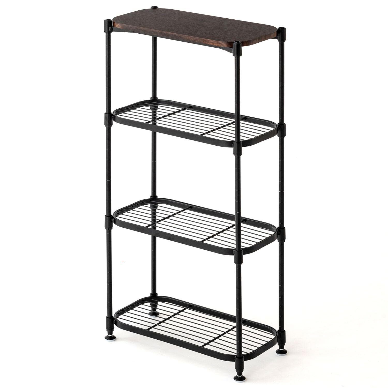スチールラックの新提案 棚位置が調整できるコンソールラック 4段 幅43.5×奥行21.0×高さ79.5cm ブラック C12-S404BK 幅40 スチール×木製 棚付き 可動棚 収納 飾り棚 玄関 リビング おしゃれ カスタマイズ対応 Luminous