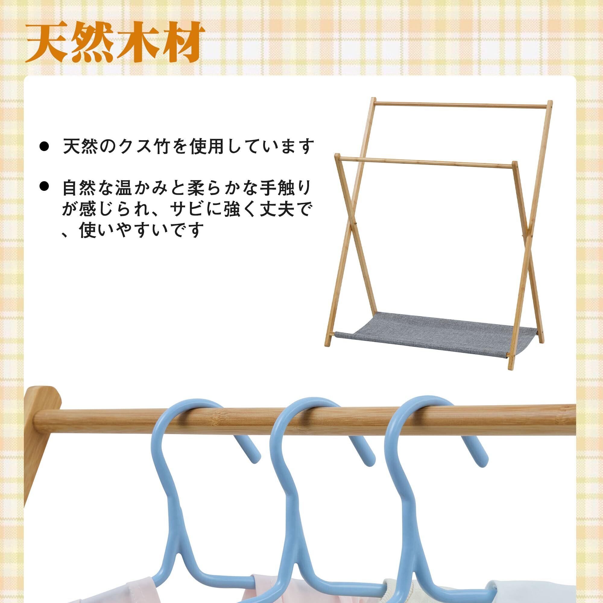 【安定感のある構造】こちらのハンガーラックは頑丈な竹製フレームにより、安定感があり、風が強い日でも倒れにくく安全に使用できます。衣類がたくさんあっても安心して干すことができます。