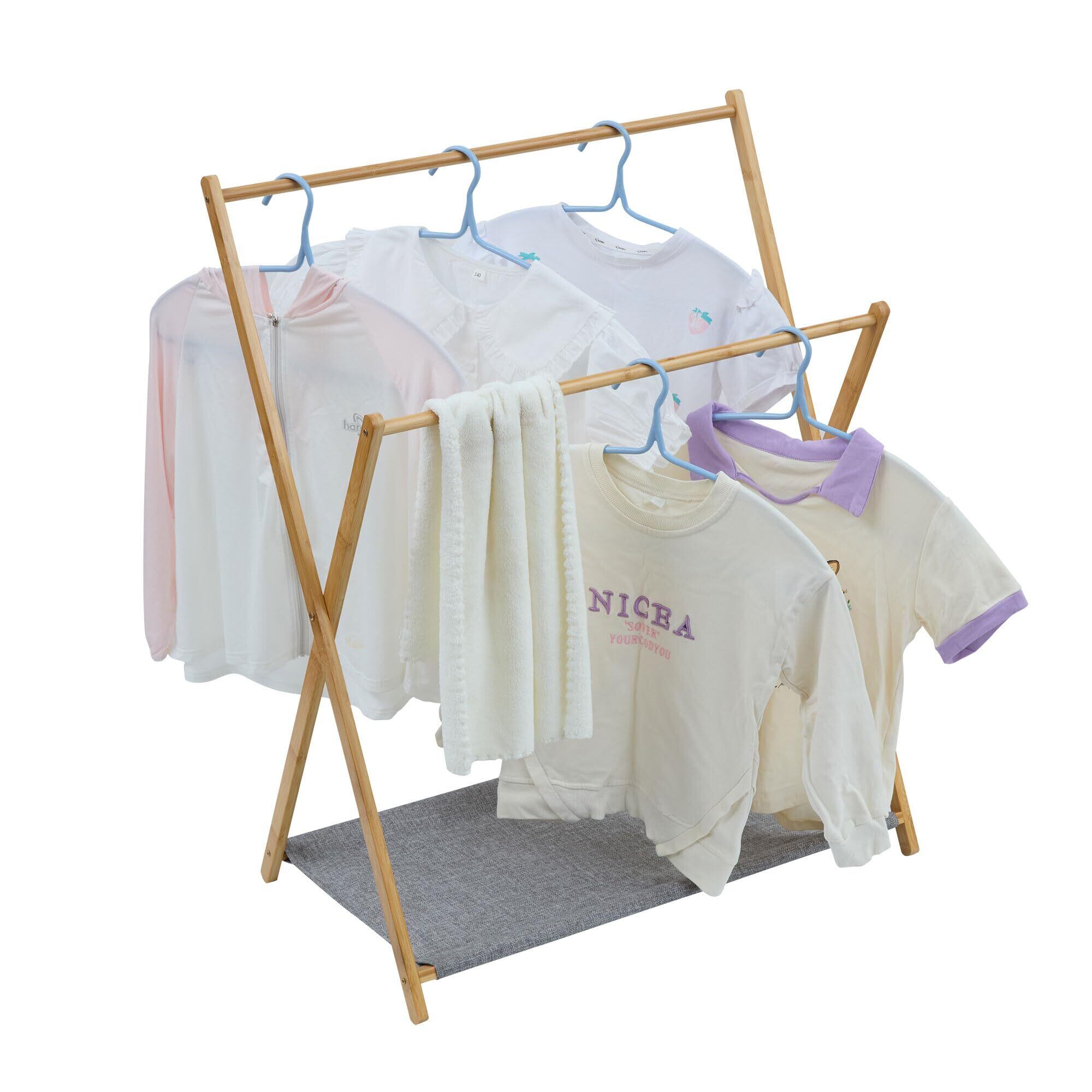 VECELO ハンガーラック 子供用 折りたたみ 物干し台 物干しラック 洋服掛け 幅53cm ペット用 犬 猫 洋服掛け タオル 衣類 おしゃれ 頑丈 天然楠竹製 服 収納 折り畳み 省スペース 耐荷重10kg 棚付き 組立簡単 耐久 多用途 子供部屋 玄関 省スペース 室内干し