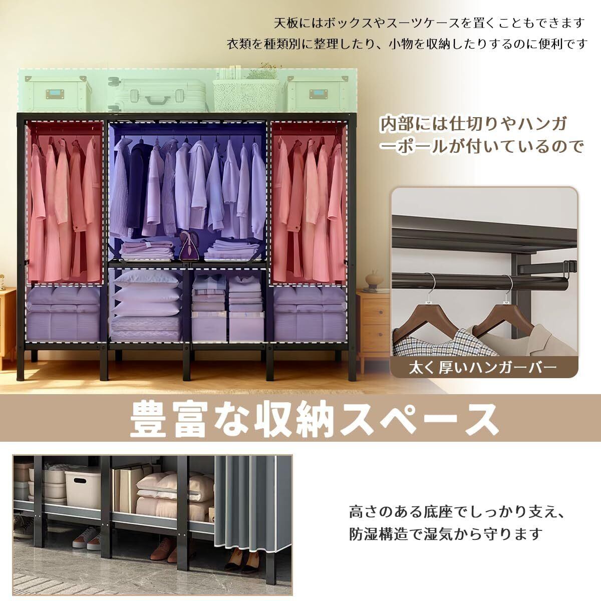 【大容量&整理しやすい内部設計】ハンガーポール+仕切り構造で、衣類を種類別に分けて収納可能。トップ部分には収納ボックスやバッグ類も置けて、季節物の衣替えやまとめ収納にも対応。幅広設計で“掛ける+置く”を1台で完結します。