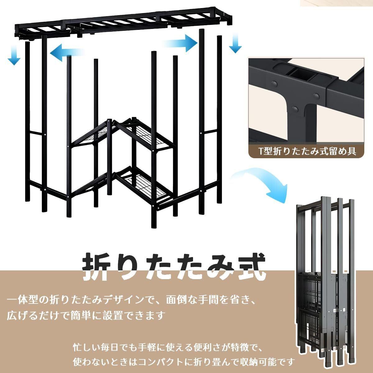 ワードローブ クローゼット ハンガーラック 大容量 幅160x奥行き48x高さ172.5cm 折りたたみ式 衣類収納ラック 洋服棚 整理棚 カバー付き 防水 防塵 防汚 耐用 多機能 省スペース 室内用 収納棚 日本語説明書付き(グレー)