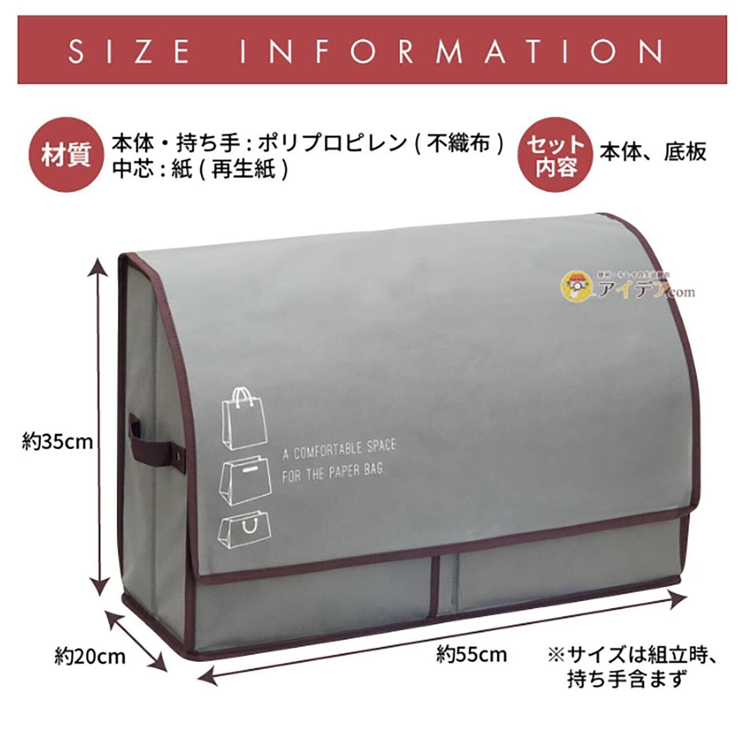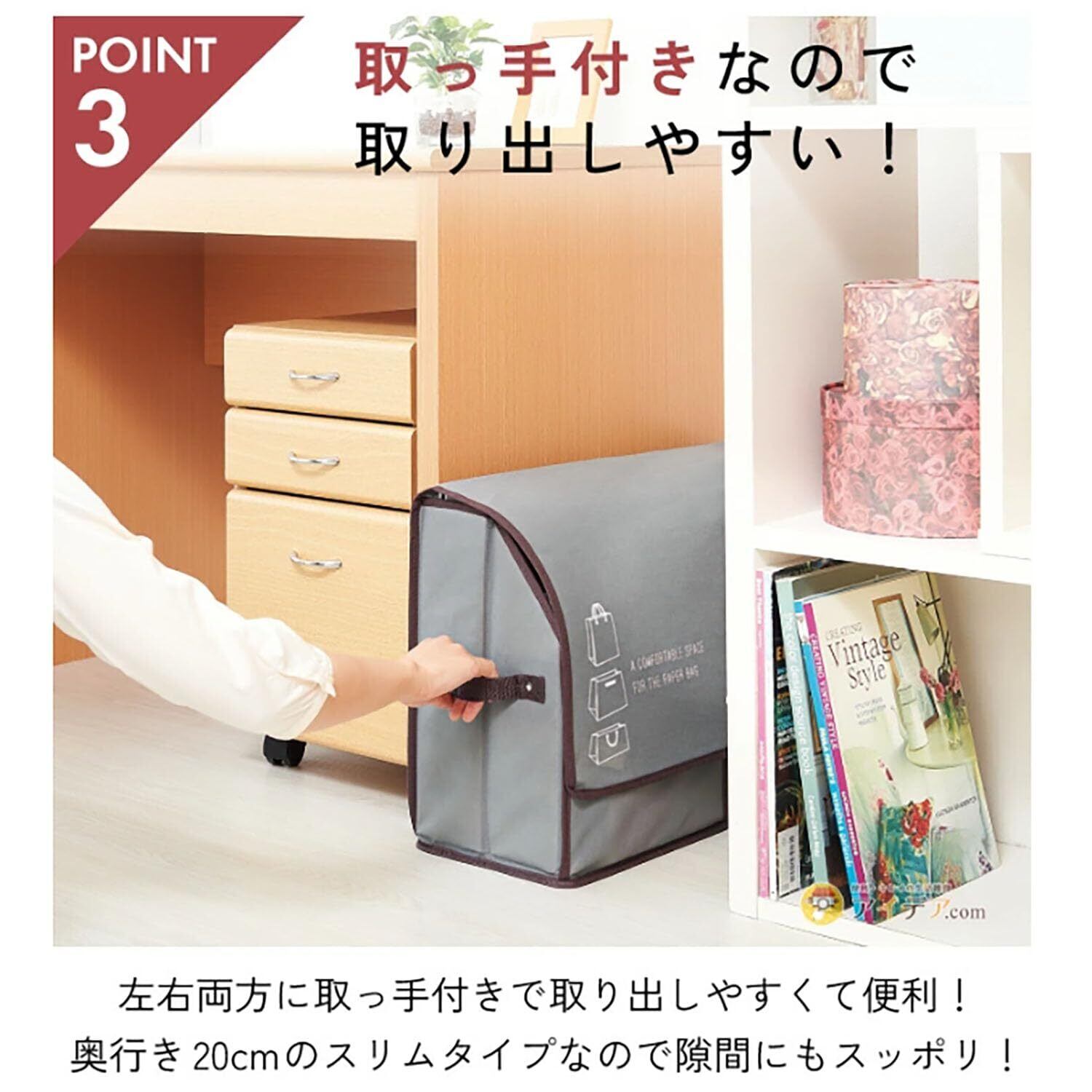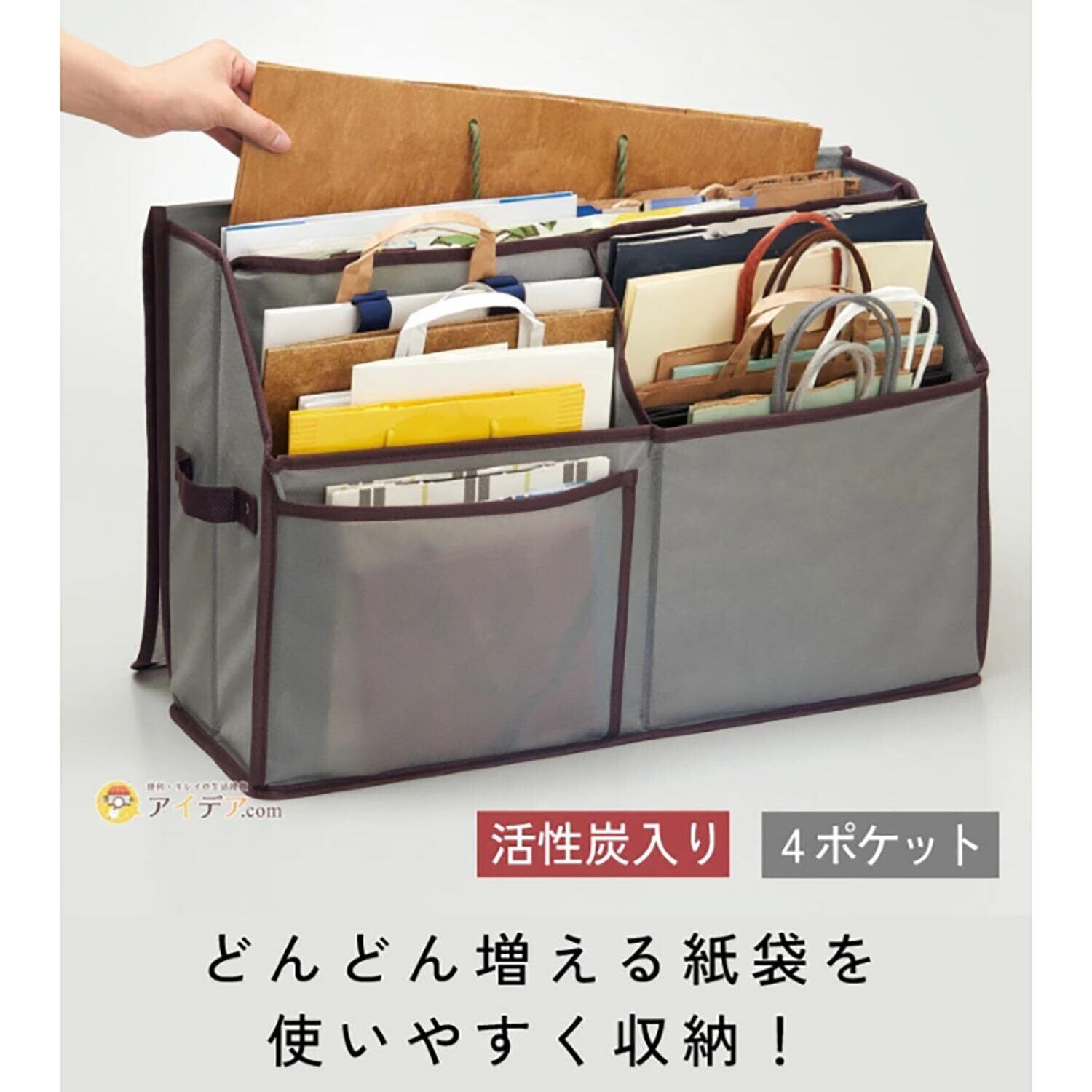 コジット 紙袋 ショップ袋 ショッピング袋 収納ケース 収納 スリム 大容量 ポケット 活性炭入り 紙袋ストッカー 紙袋収納ボックス 奥行20cm グレー 活性炭入り紙袋収納ボックス