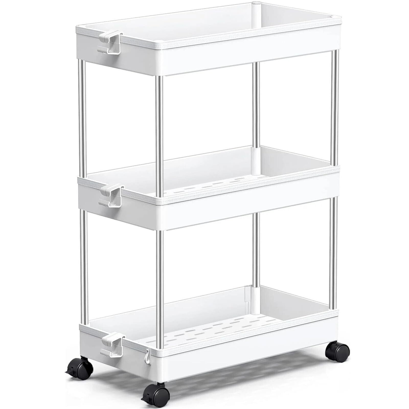 キッチンワゴン キャスター付き 隙間収納 23cm 3段 スリム 収納ワゴン 洗面所 台所 トイレ 浴室 冷蔵庫横 スリムワゴン 細い棚 組立簡単 ホワイト