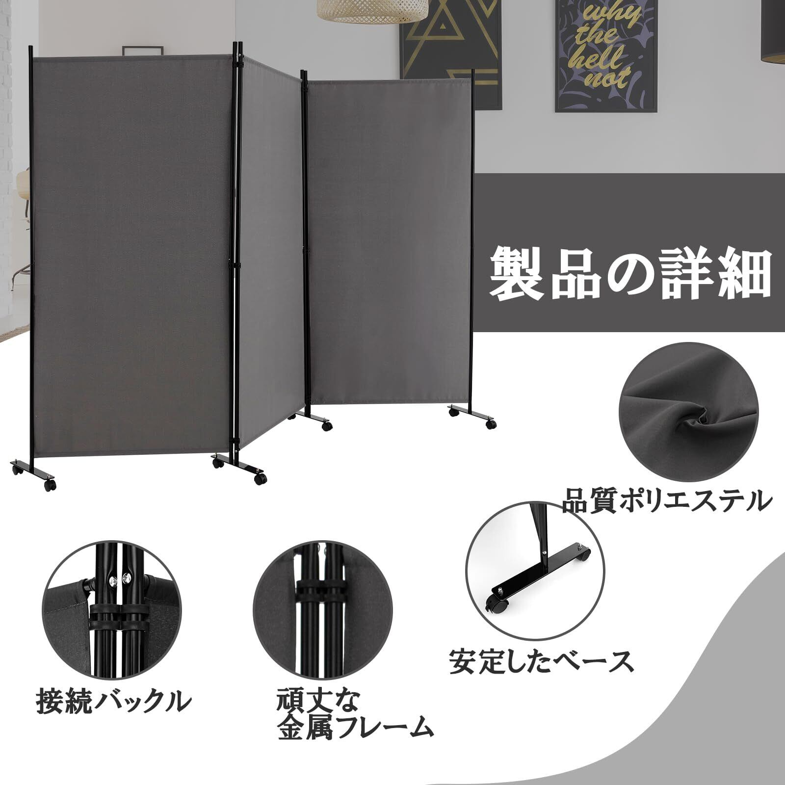 GYMAX パーテーション 3連 高さ180cm 幅260cm 間仕切り キャスター付き 布タイプ 自立式 オフィス クリニック お家 目隠し グレー 法人様向け