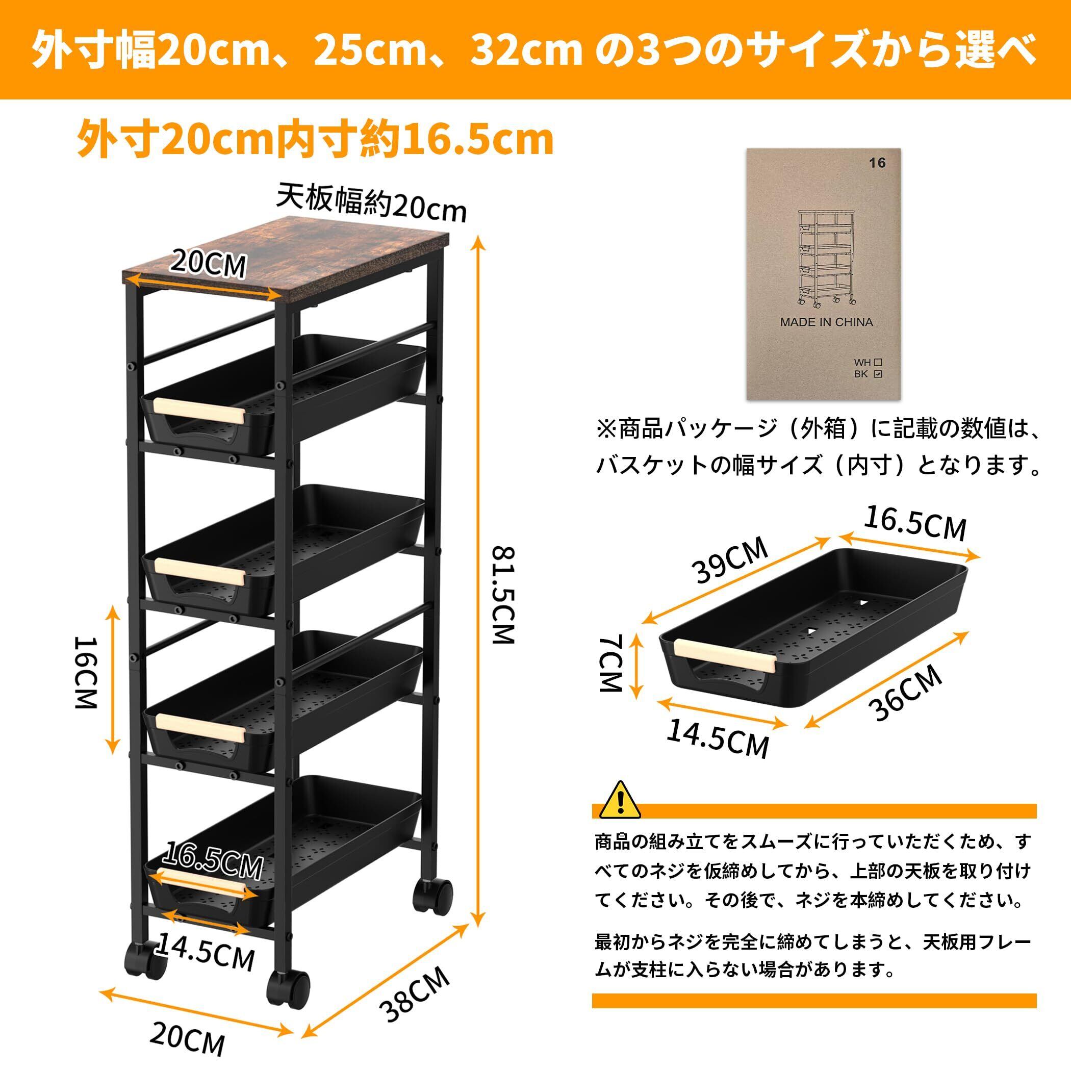 SVOHZAV キッチンワゴン スライド式 幅20/25/32cm 天板付き 隙間収納 スリムワゴン キャスター付き キッチン 高さ81cm 洗面所 収納ラック 調味料棚 ラック 洗濯機横 冷蔵庫横収納 ランドリーワゴン 棚 スリムラック (ブラック, 外寸幅20cm-内寸約16.5cm−5段)